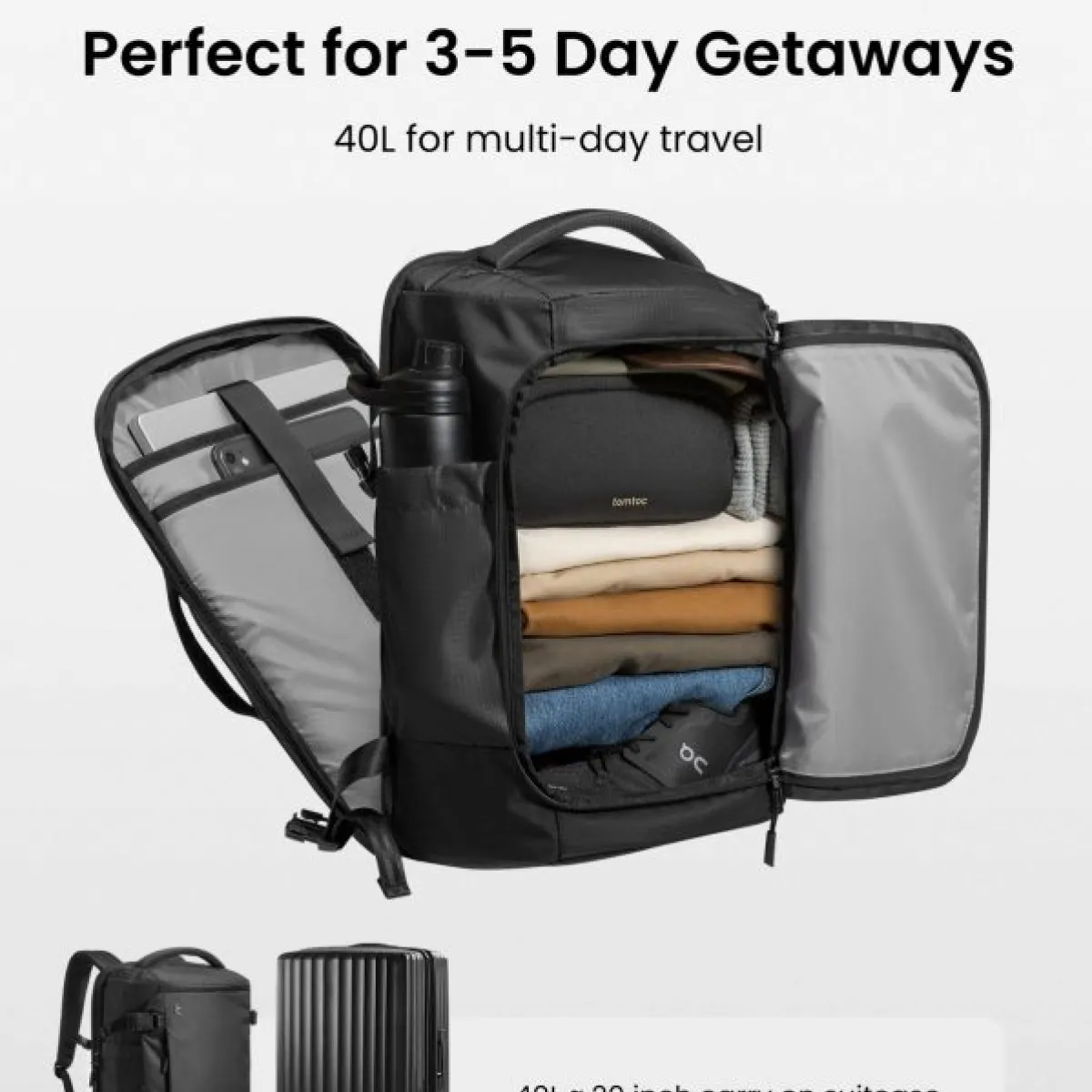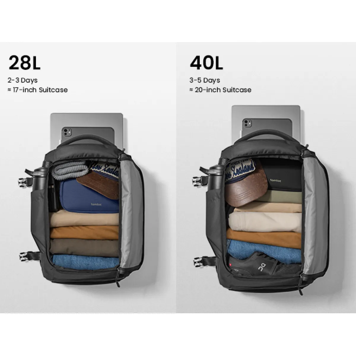 Balo Tomtoc Liteway Travel Backpack 28L 15.6 inch DRS sở hữu ngăn chính thiết kế mở rộng như một chiếc vali giúp việc sắp xếp quần áo cho chuyến đi 3 ngày. Các ngăn phụ phía trước và hai bên hông được bố trí hợp lý để người dùng lấy nhanh hộ chiếu, ví tiền hoặc bình nước mà không cần lục tìm.