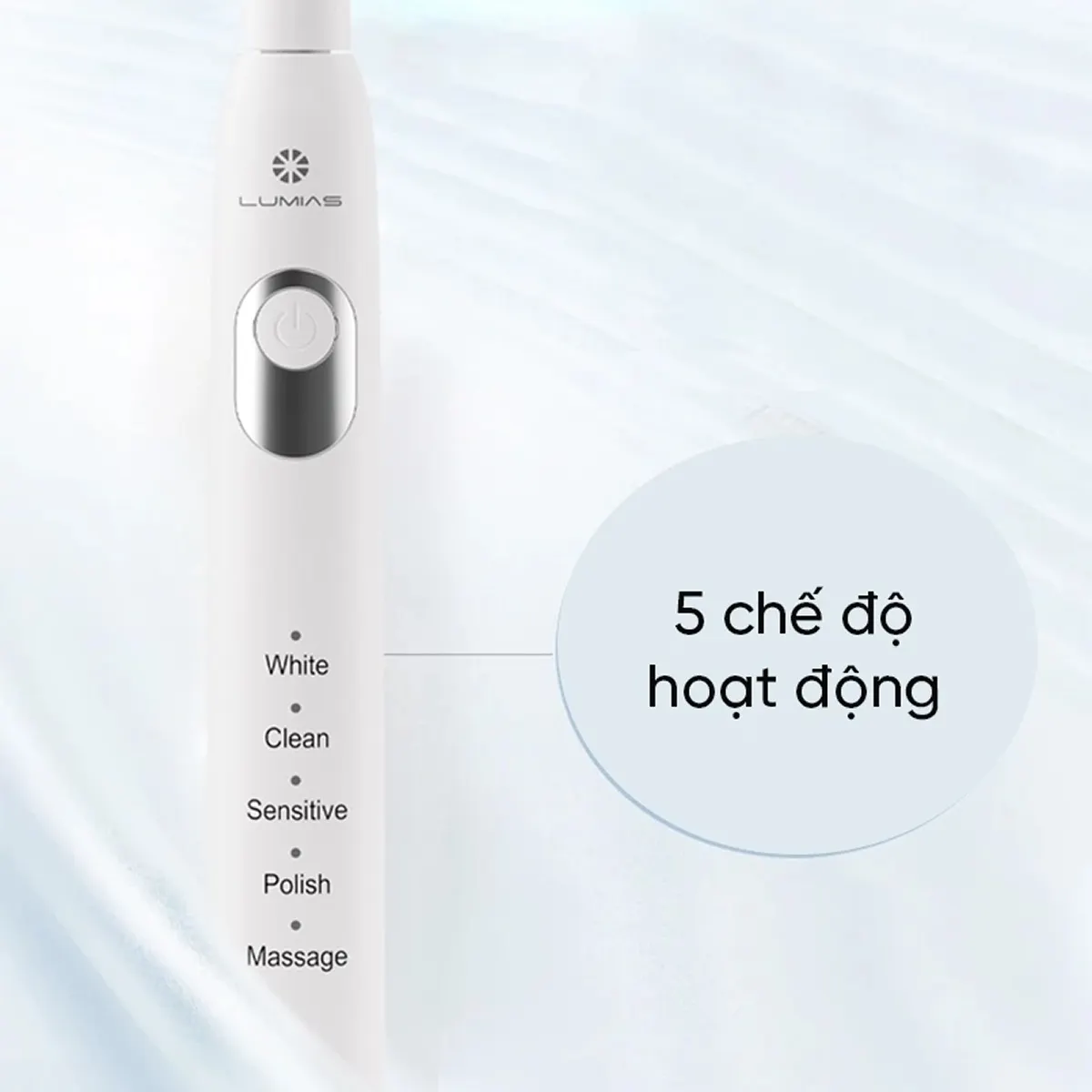 Sản phẩm cung cấp 5 chế độ chải riêng biệt gồm Làm trắng, Làm sạch, Nhạy cảm, Đánh bóng và Mát xa. Mỗi chế độ của bàn chải điện Lumias SET-800 được thiết kế để đáp ứng các nhu cầu chăm sóc răng miệng khác nhau, từ làm sạch sâu đến bảo vệ răng nhạy cảm.