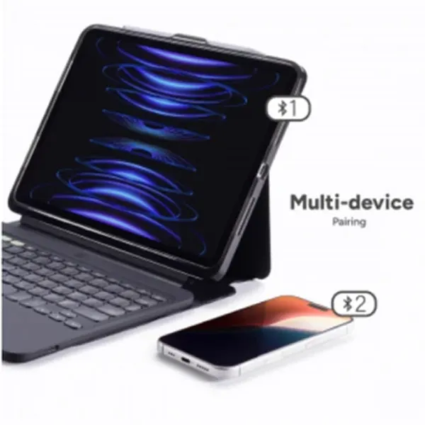 Người dùng có thể kết nối bàn phím bao da iPad Pro 11 M4 Zagg Pro Key 2 thông qua Bluetooth một cách dễ dàng. Đặc biệt, bàn phím Zagg Pro Key 2 còn có thể chuyển đổi linh hoạt giữa 2 thiết bị nhờ nút tắt/bật cùng lúc được tích hợp trên sản phẩm. Giá đỡ bút cảm ứng trên bao da có thể tháo rời, giúp người dùng thoải mái đem theo bút vẽ tùy thích.