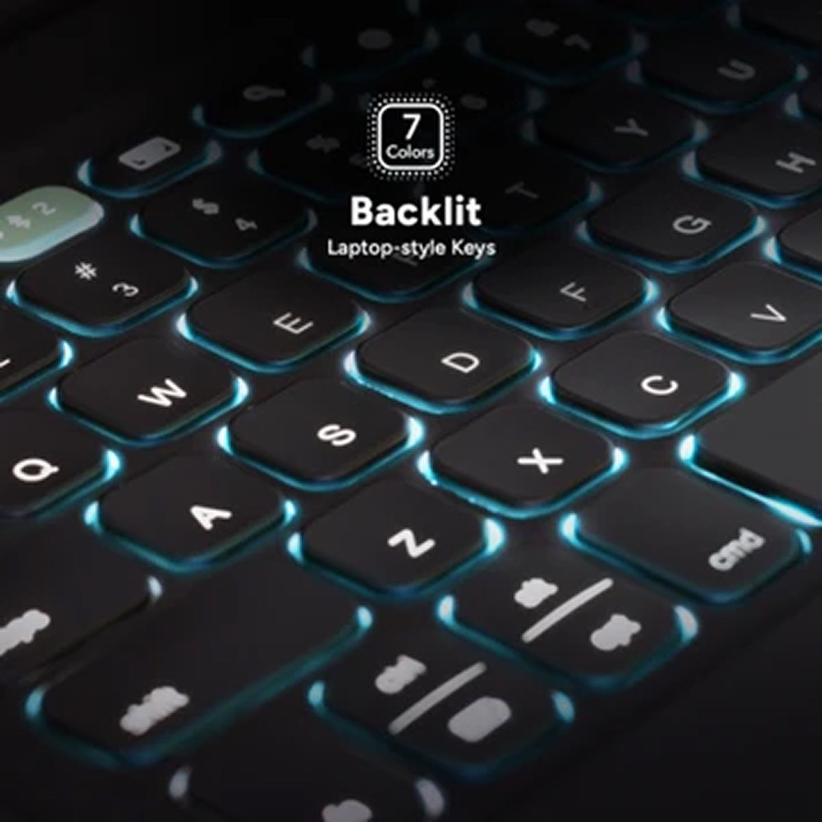 Bàn phím bao da iPad Pro M4 13 2024 Zagg Pro Key 2 sở hữu bàn phím kiểu máy tính xách tay được cải tiến, mang lại cảm giác gõ phím nhanh, êm ái. Một điểm ấn tượng, bàn phím này có đèn nền với 7 màu sắc khác nhau, hỗ trợ làm việc trong điều kiện thiếu sáng dễ dàng hơn. Bao da hỗ trợ kết nối Bluetooth với hai thiết bị, cho phép khách hàng chuyển đổi nhanh chóng giữa chúng, đem đến sự tiện lợi tuyệt vời.
