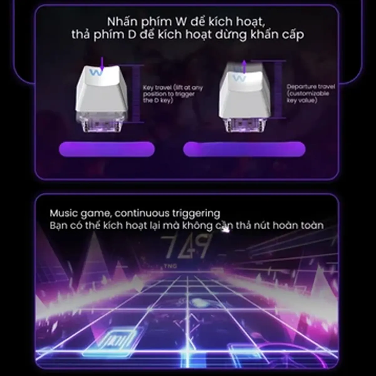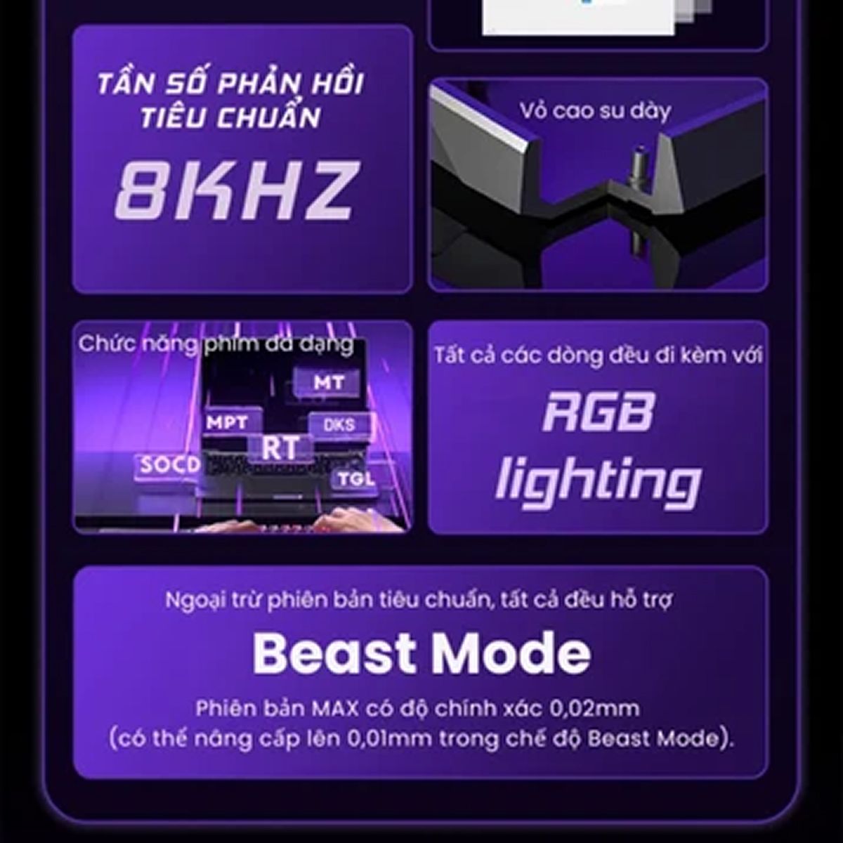Bên cạnh đó, bàn phím này còn có tính năng hot-swappable cho phép người dùng thay thế switch dễ dàng, từ đó nâng cấp hoặc tùy biến bàn phím theo sở thích. Sự kết hợp giữa keycap bền bỉ và switch linh hoạt sẽ mang lại trải nghiệm gõ phím vừa thoải mái vừa lâu dài.