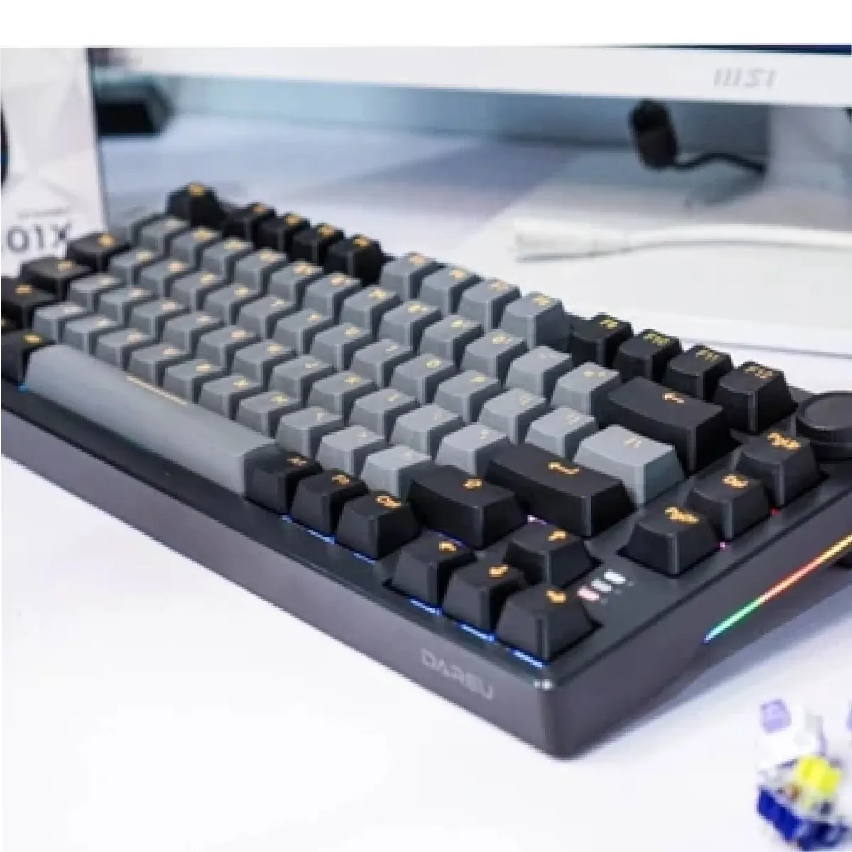 Dareu EK75 có bộ keycap được đúc từ nhựa PBT bằng công nghệ in Double - Shot vừa củng cố độ bền cho bàn phím vừa tạo ra thanh âm trong trẻo hơn mỗi lần nhấn. Đặc biệt mẫu bàn phím này còn trang bị thêm một núm xoay có có thể phối hợp tốt cùng chuột giúp người dùng chinh phục mọi trận game tuyệt đỉnh. Bàn phím sử dụng Switch Dare U Firefly giúp người dùng nhấn phím nhẹ hơn và có thể tùy biến để thay đổi switch theo mong muốn và sở thích của riêng mình.