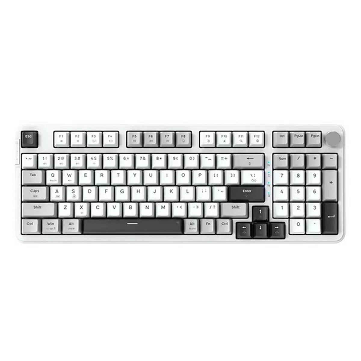 Bàn phím cơ E-DRA EK398W trắng sở hữu thiết kế full-size 97 phím nhưng được tinh gọn, tiết kiệm diện tích trên bàn làm việc. Sự kết hợp giữa màu case trắng và keycap ba tông Gray – White – Black mang lại vẻ ngoài thanh lịch, phù hợp cho cả môi trường văn phòng lẫn góc gaming cá tính.