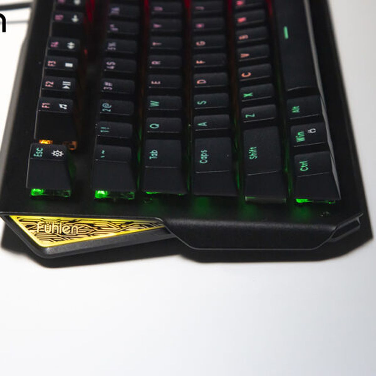 Cạnh đó, hãng còn cực kỳ chăm chút vào từng đường nét với đường viền cắt vát tráng gương cùng 2 logo Fuhlen 2 nổi bật. Đặc biệt, Fuhlen Destroyer còn có trang bị Led rainbow 7 màu càng làm nổi bật của ngoại hình phím và bạn cũng thoải mái tuỳ chỉnh chiếu sáng thông qua phím chức năng Fn tiện lợi.