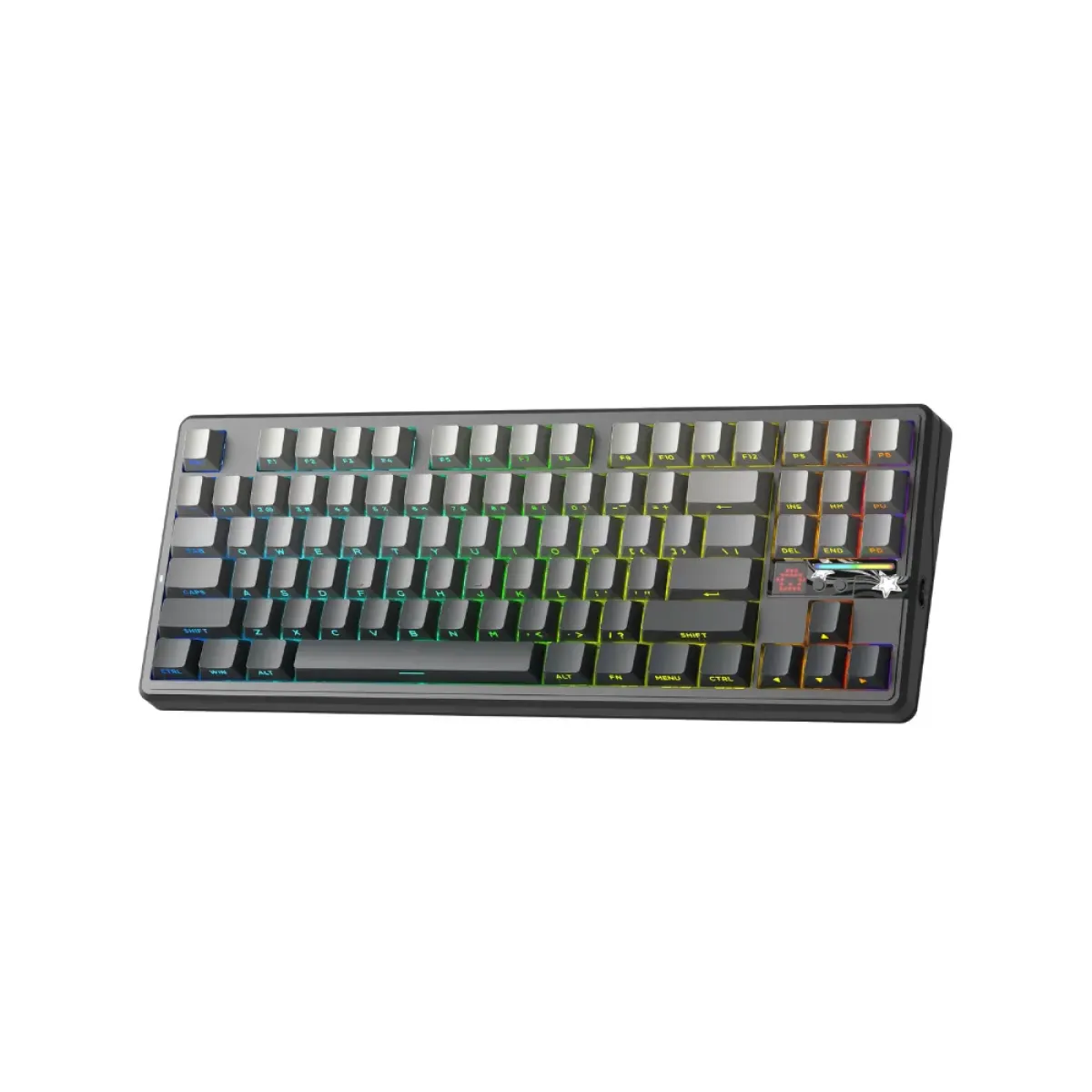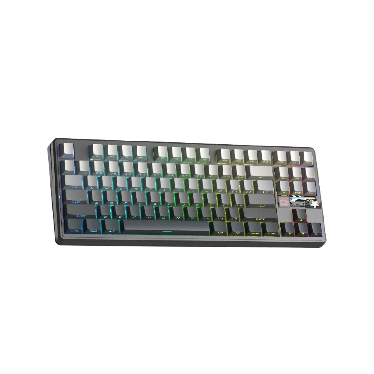 Bàn phím cơ không dây AULA F87 Pro V2 xám đen gradient sở hữu thiết kế Tenkeyless giúp người dùng tối ưu không gian bàn làm việc. Kiểu dáng gọn gàng này tạo điều kiện thuận lợi cho các cử động chuột linh hoạt khi chơi game hoặc xử lý tác vụ văn phòng hằng ngày.