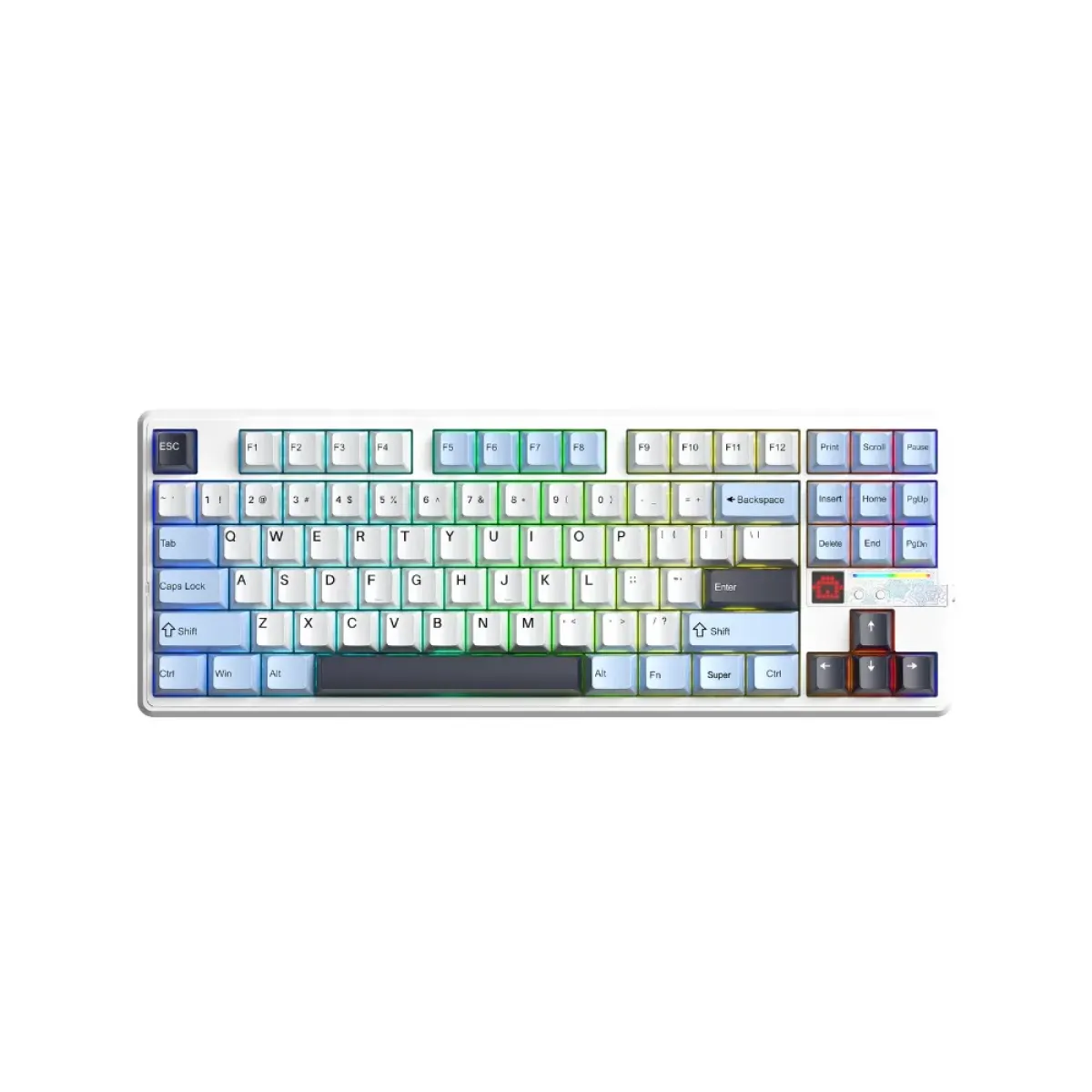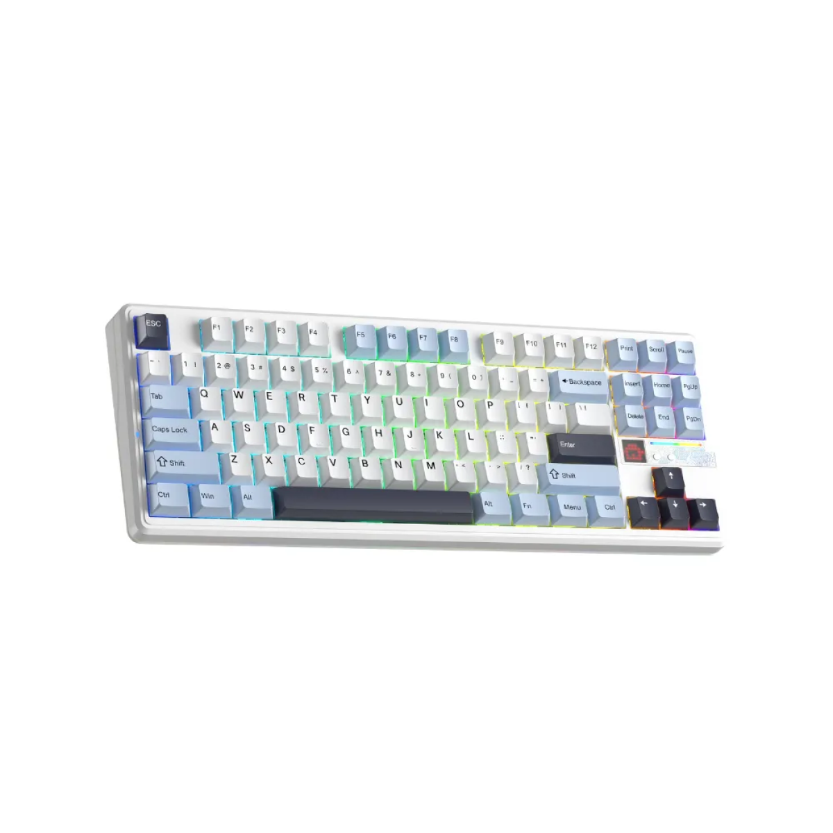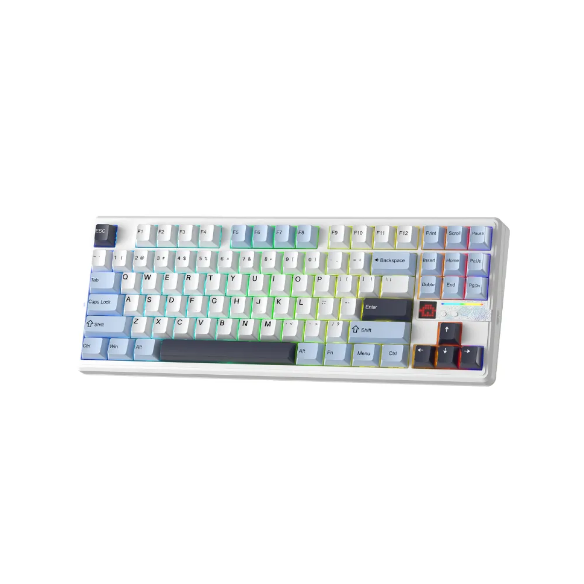 Aula F87 Pro V2 gây ấn tượng mạnh mẽ nhờ sự kết hợp giữa cấu trúc gõ êm ái cùng hệ thống hiển thị rực rỡ. Bên cạnh ngoại hình nổi bật, hiệu năng của bàn phím Aula này còn được khẳng định qua tốc độ phản hồi cao.