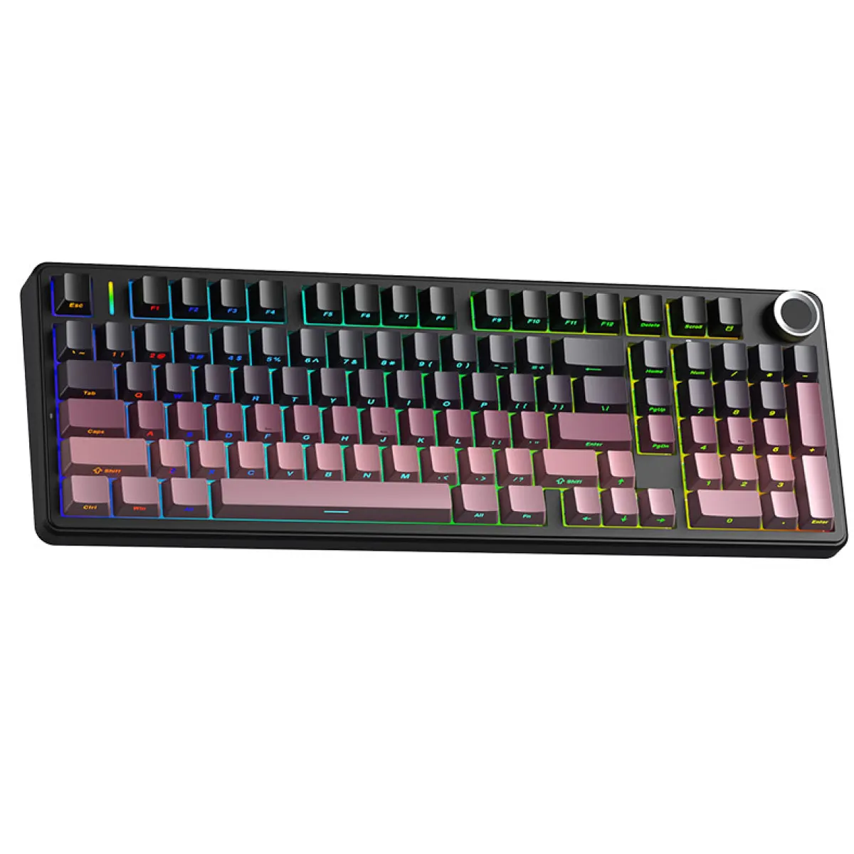 Bàn phím cơ không dây Aula F99 Pro đen hồng được chế tác với cấu trúc Gasket Mount cao cấp, giúp giảm tối đa độ rung và tiếng ồn khi gõ. Cấu trúc này được tối ưu để mang lại độ chắc tay khi sử dụng. Toàn bộ phần khung máy được hoàn thiện tỉ mỉ với tông màu đen phối hồng nổi bật, phù hợp cho người dùng yêu thích sự cá tính nhưng vẫn giữ nét tinh tế.