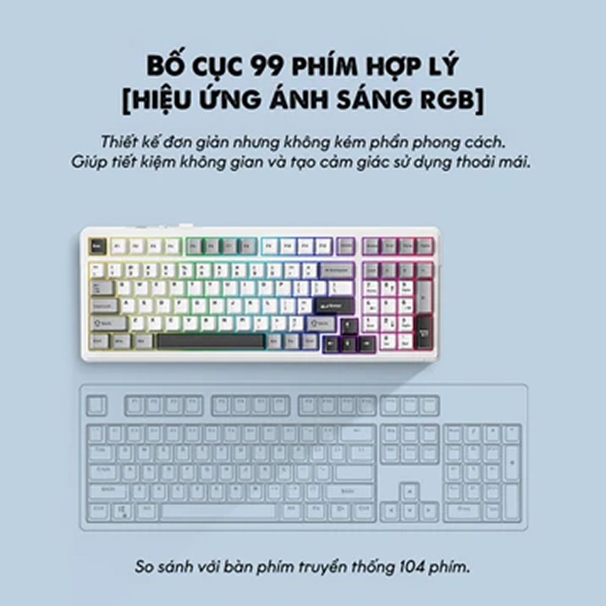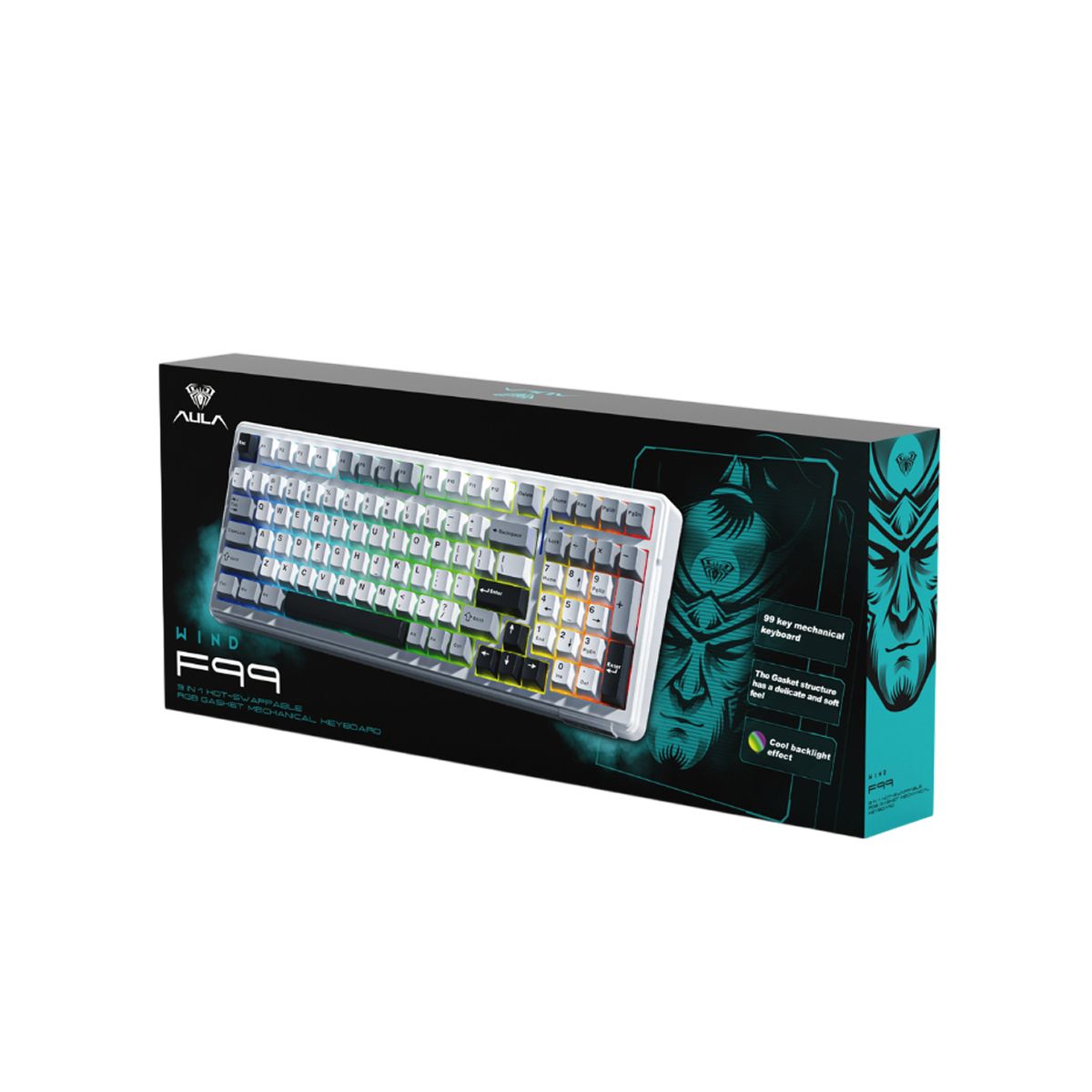 Bàn phím cơ không dây AULA F99 Trắng Xám