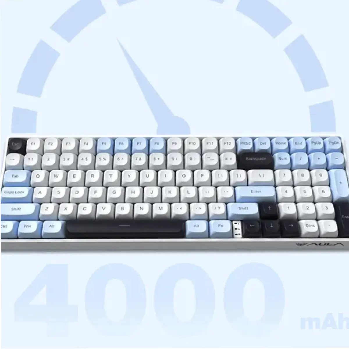 Thiết kế bàn phím cơ không dây Aula S100 Pro xanh dương trắng tím đậm