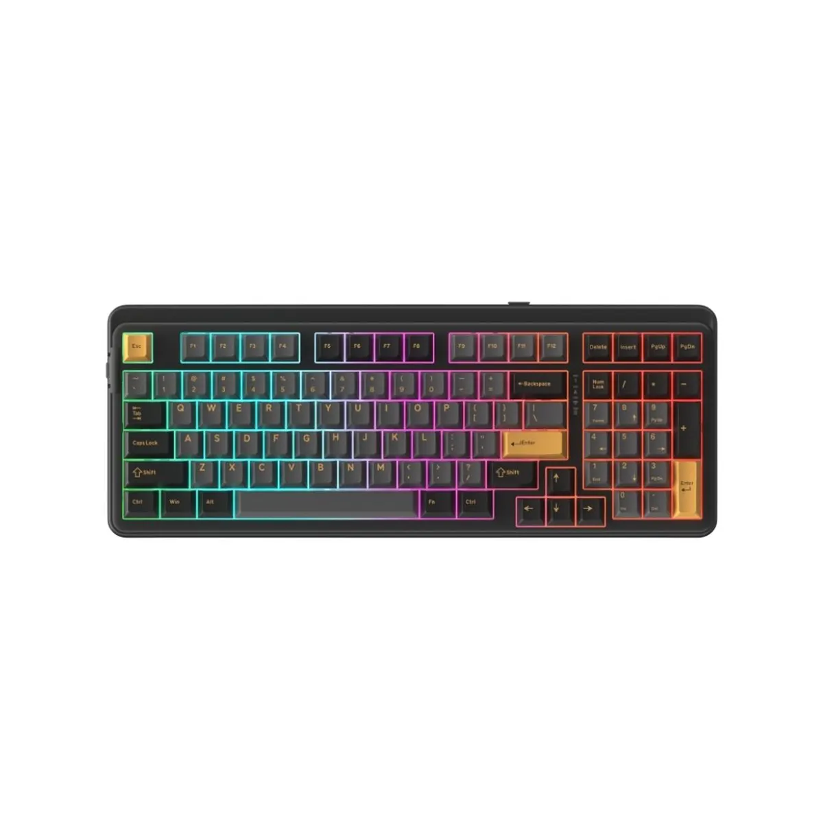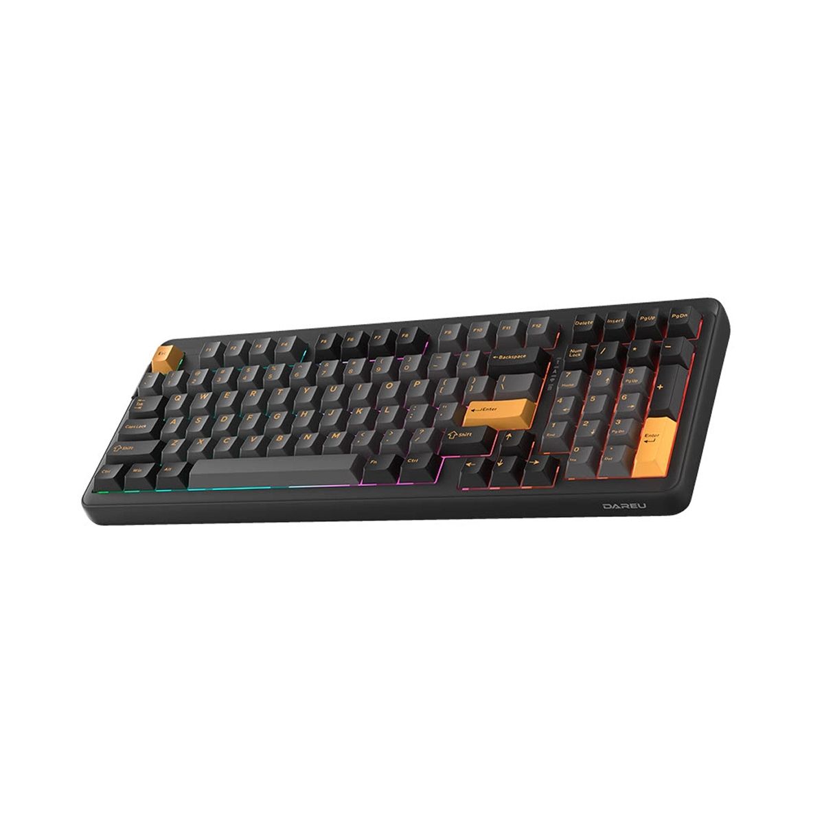 Ở phần keycap, bàn phím cơ không dây DareU EK98 Pro RBG Black Golden sử dụng chất liệu PBT Double-Shot bền màu, khó mờ chữ sau thời gian dài sử dụng. Đi kèm với đó là bộ switch DareU Cloud tuyến tính mang lại cảm giác gõ mượt mà, không phát ra âm thanh clicky gây khó chịu.