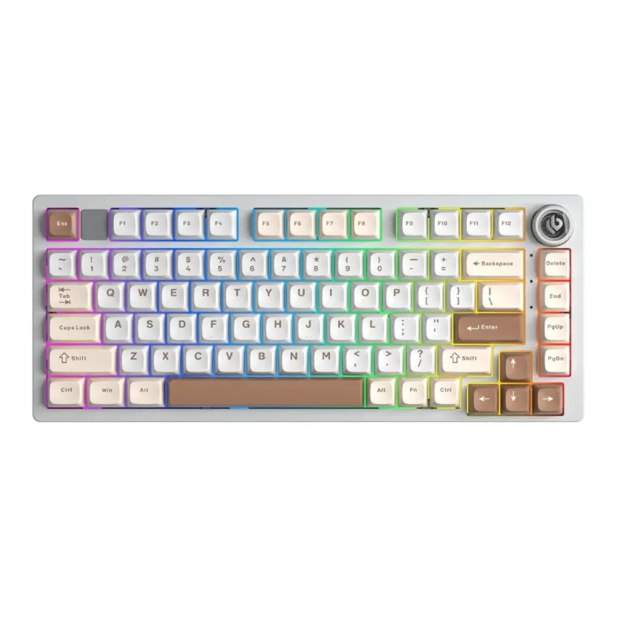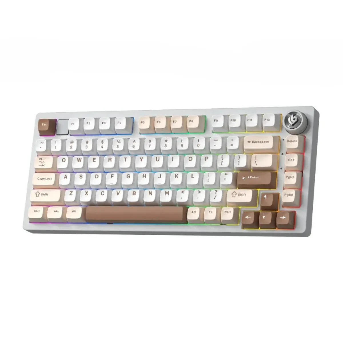 LEOBOG Hi75C Pro sở hữu vẻ ngoài tinh tế với phối màu be – trắng – nâu thanh lịch, kết hợp cùng case nhôm nguyên khối chắc chắn. Thiết kế tenkeyless 81 phím không chỉ tiết kiệm không gian mà còn giúp thao tác nhanh gọn, phù hợp cho cả game thủ lẫn dân văn phòng.