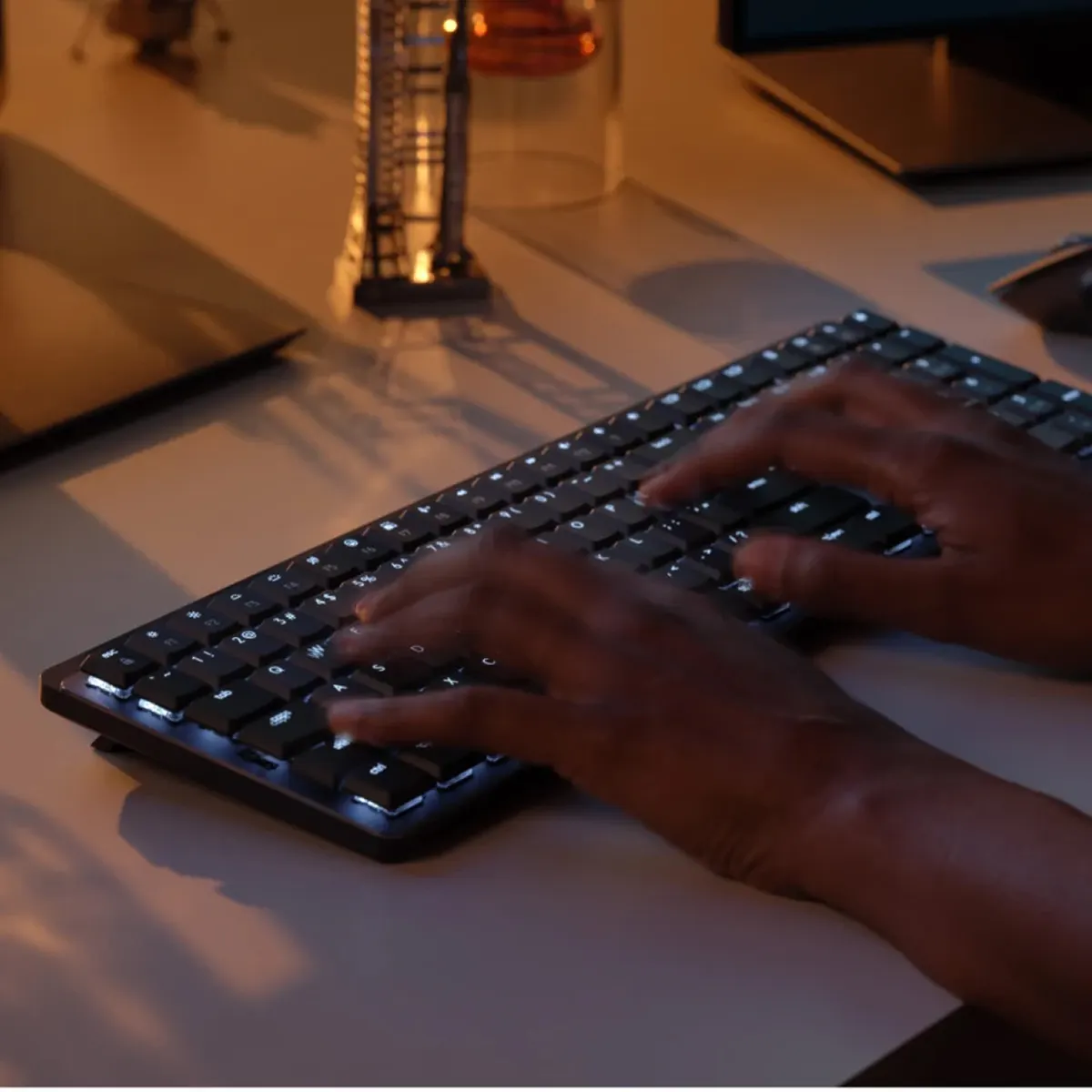 Logitech MX Mechanical còn có hiệu ứng đèn nền thông minh, chiếu sáng đẹp mắt khi tay bạn đến gần. Hơn nữa, nó cũng có khả năng tự động điều chỉnh độ sáng để phù hợp với môi trường xung quanh, nhằm tiết kiệm pin cho thiết bị.