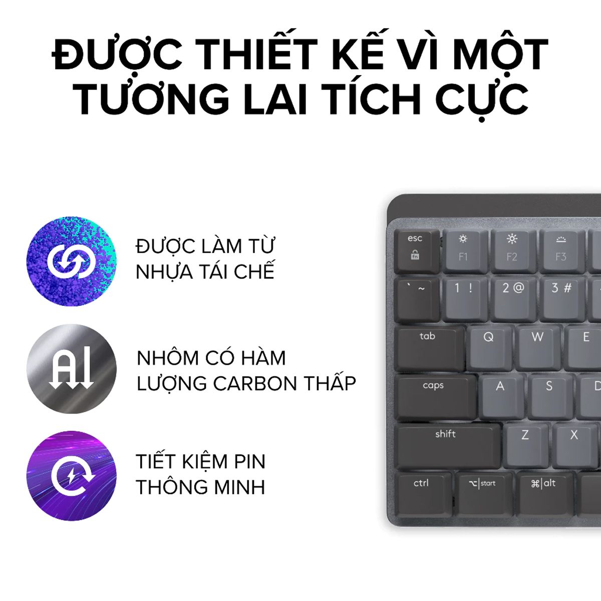 Bên cạnh đó, một số bộ phận của Logitech MX Mechanical sẽ được làm từ nhựa cao cấp, có độ bền cao. Trong khi đó, lớp vỏ trên cùng sẽ bằng nhôm, có khả năng chịu được lực tốt, đảm bảo sự ổn định tối ưu.