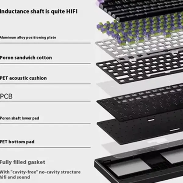 Khung bàn phím được chế tác từ hợp kim nhôm 6063, xử lý bằng phun cát zirconium, mang lại độ bền cao và cảm giác chắc tay khi thao tác. Bàn phím được trang bị đèn LED RGB, mang lại hiệu ứng ánh sáng đa sắc.
