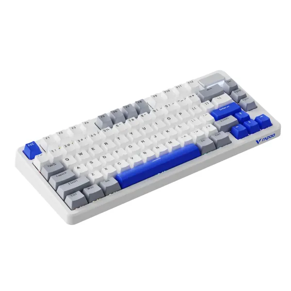 Bàn phím cơ Rapoo V700DIY-75 Xanh Dương Trắng sở hữu thiết kế hiện đại với tông màu xanh dương trắng, phù hợp với nhiều phong cách không gian làm việc. Bộ keycap Doubleshot PBT cho cảm giác gõ chắc chắn, hạn chế bám mờ hiệu quả theo thời gian.