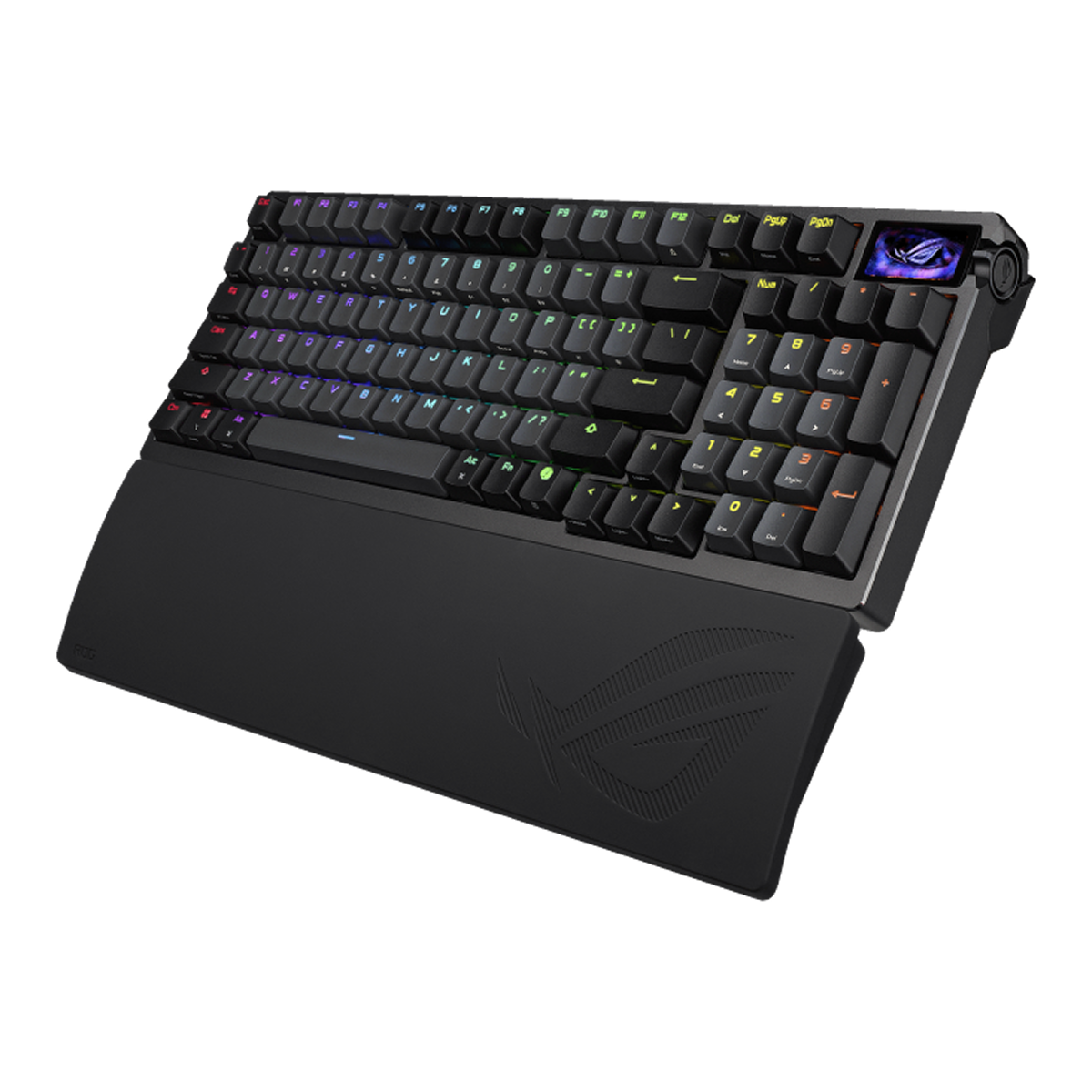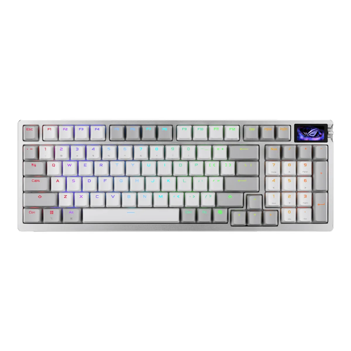 Với form compact 96% hiện đại, bàn phím Gaming Asus ROG Azoth 96 HE tối ưu không gian trên mặt bàn mà vẫn giữ lại cụm phím số. Điểm nhấn của thiết bị nằm ở màn hình OLED 1.47 inch, hỗ trợ hiển thị rõ nét các trạng thái hoạt động theo thời gian thực.