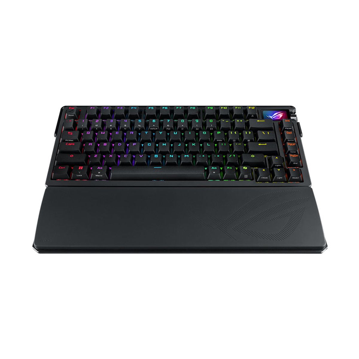 ASUS ROG Azoth Extreme còn có hệ thống đèn nền RGB Aura Sync tùy chỉnh. Điều này cho phép người dùng tạo ra những hiệu ứng ánh sáng độc đáo và đồng bộ với các thiết bị khác trong dàn PC. Mỗi phím bấm đều được trang bị đèn LED riêng biệt kèm theo một màn hình OLED hiển thị trạng thái bàn phím càng thêm thu hút hơn.