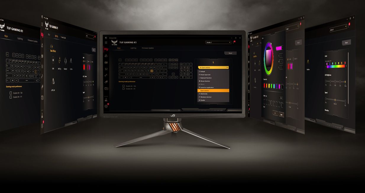 Để có thể điều khiển hệ thống đèn RGB trên bàn phím, bạn cần cài đặt ứng dụng Armory Crate của Asus. Các vùng sáng này còn có thể được cài đặt để đồng bộ tương ứng với ánh sáng trong các trò chơi, nội dung trên máy tính.