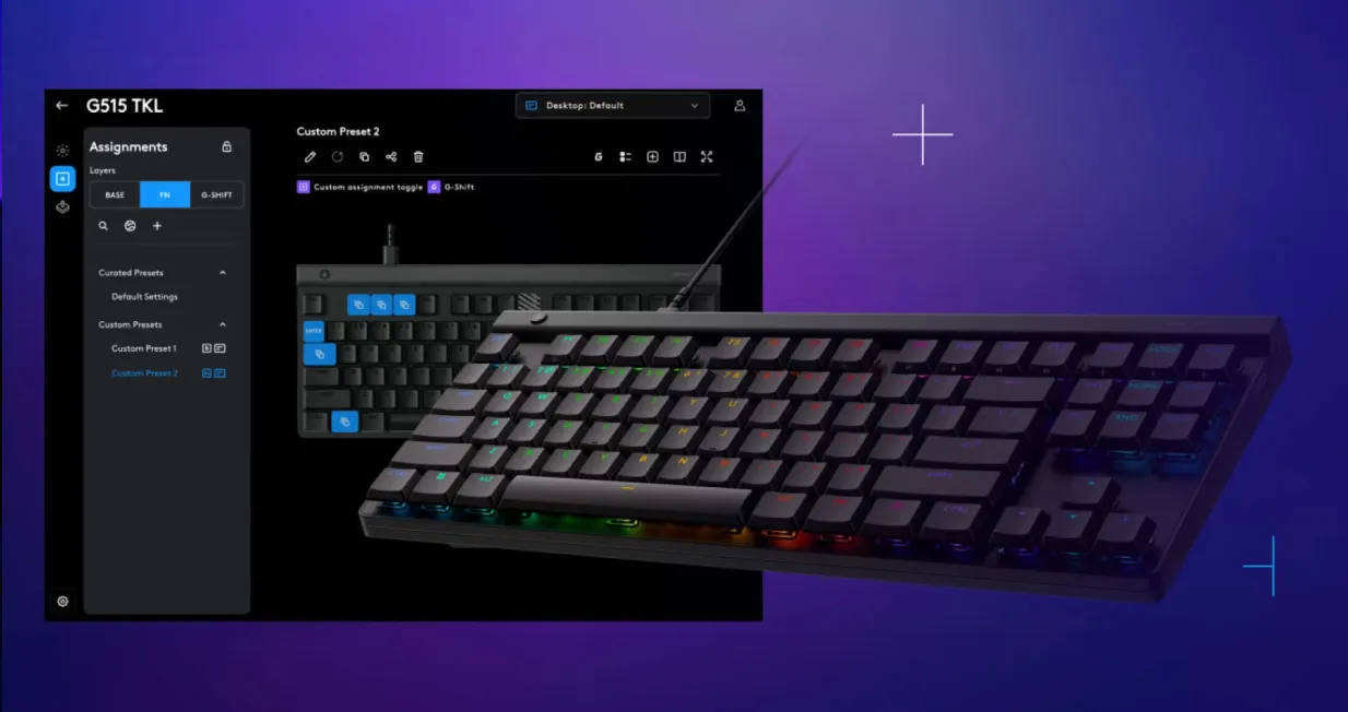 Bàn phím gaming có dây Logitech G515 TKL sử dụng nắp phím PBT hai mặt