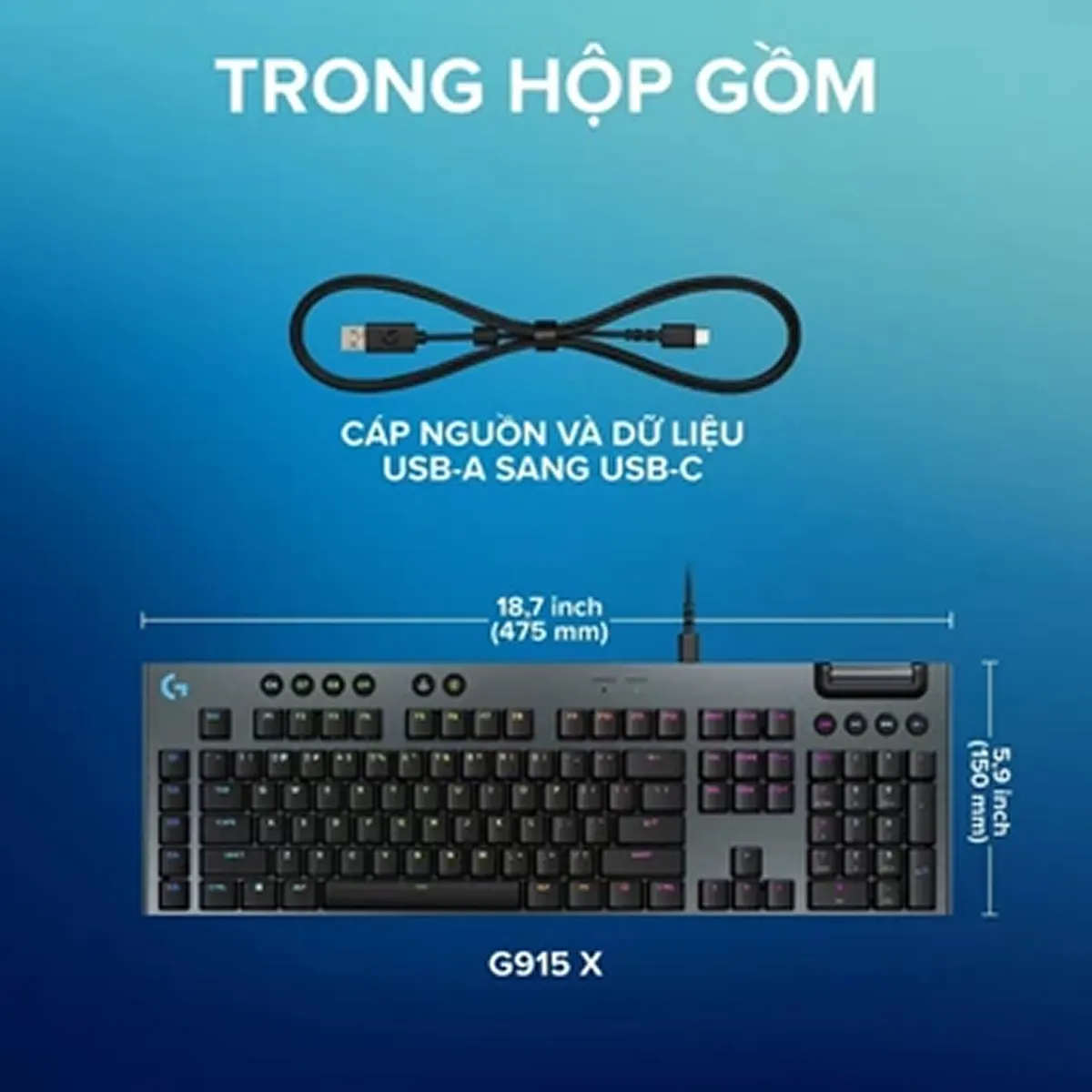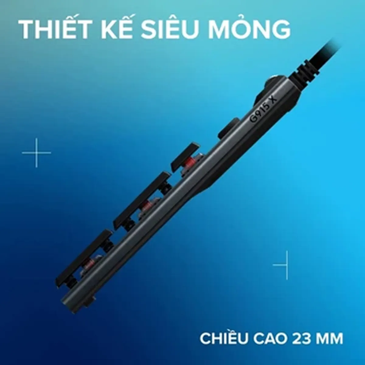 Bàn phím gaming có dây Logitech G915 X Low Profile có chiều cao chỉ 2.3cm mang tới sự đột phá trong thiết kế. Từng chi tiết được gia công tỉ mỉ với kỹ thuật chuyên môn cao và cấu trúc mỏng ấn tượng mang đến trải nghiệm thoải mái và vẻ ngoài lôi cuốn. Sản phẩm tích hợp Lightsync RGB 16.8 triệu màu cho phép người dùng tùy chỉnh ánh sáng, tạo ra trải nghiệm cá nhân hoá.