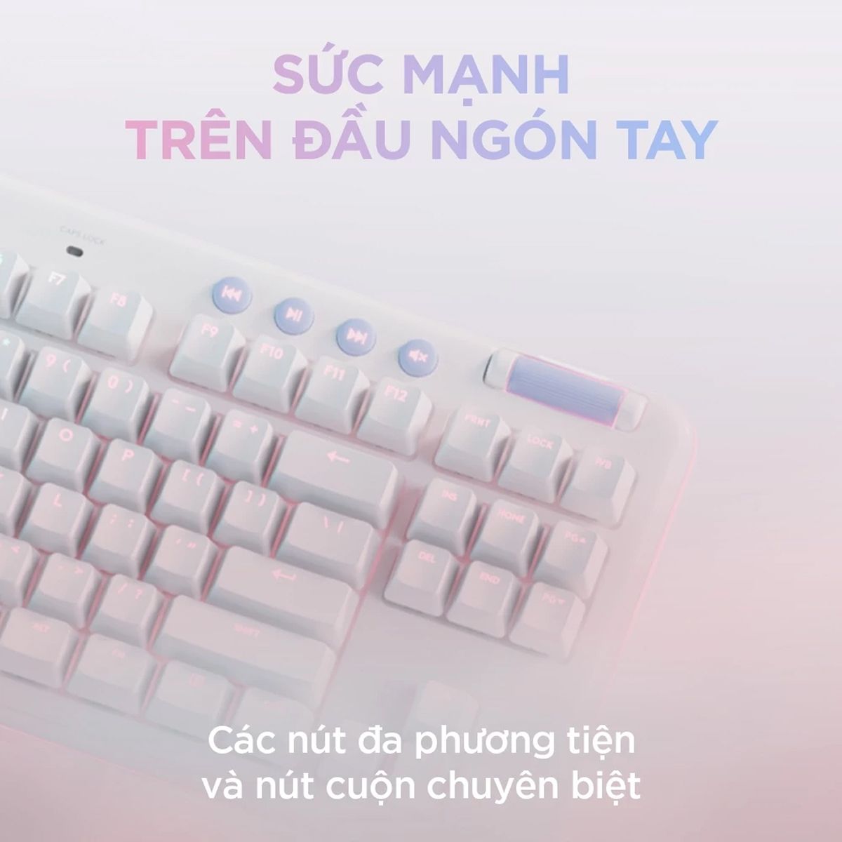 Mũ phím PBT đúc hai lớp không chỉ tăng cường độ bền của bàn phím Gaming không dây Logitech G715 TLK Lightspeed RGB Tactile mà còn mang lại cảm giác nhẵn bóng và mượt mà hơn khi sử dụng.