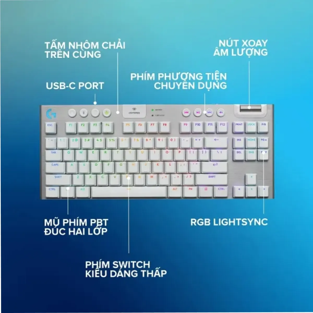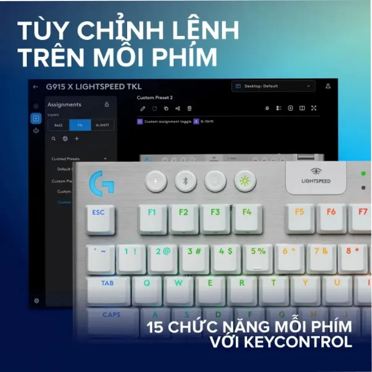 Bàn phím gaming không dây Logitech G915 X Lightspeed TKL Low Profile - Keycap hiện đại, tốc độ phản hồi nhanh