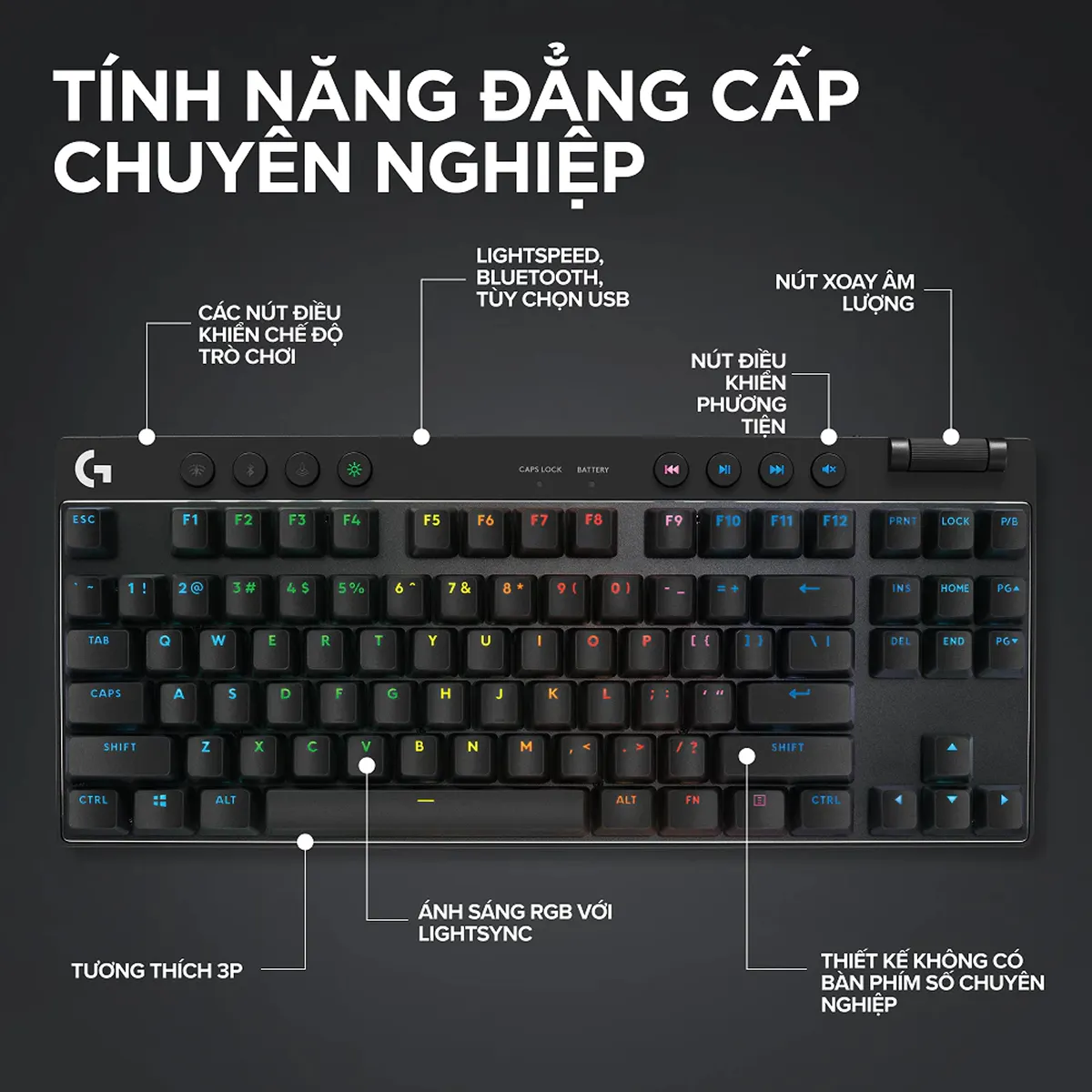 Bàn phím Gaming Logitech Pro X TKL Lightspeed - Cải tiến vượt trội, dùng tiện dụng hơn