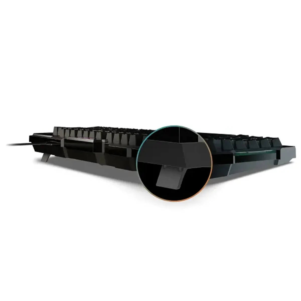 Với hiệu ứng đèn LED RGB bắt mắt, chiếc keyboard đến từ thương hiệu MSI nổi bật với thiết kế độc đáo mang đến không gian chiến game sống động cho người chơi. Đặc biệt hone, phần góc bàn phím còn có khả năng điều chỉnh linh hoạt nên bạn có thể tận dụng để đảm bảo cổ tay luôn thoải mái khi sử dụng.