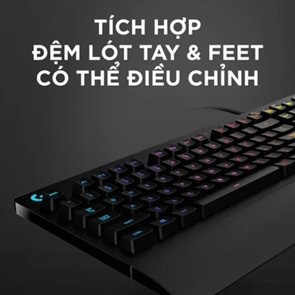Logitech G213 Prodigy khác hẳn với những mẫu bàn phím gaming khác của Logitech nhờ vào thiết kế phím giả cơ độc đáo. Thay vi phím cơ, G213 Prodigy sử dụng cơ chế phím lõm và được Logitech hiệu chỉnh riêng giúp giữ độ cao tối đa. Hành trình phím 4mm, lực tác động 50g giúp tạo trải nghiệm gõ phím êm nhẹ và đầy yên tĩnh. Thiết kế đệm kê tay và chân nghiêng của Logitech G213 Prodigy giúp bạn dễ điều chỉnh vị trí đặt tay, tăng tính thoải mái khi gõ phím.