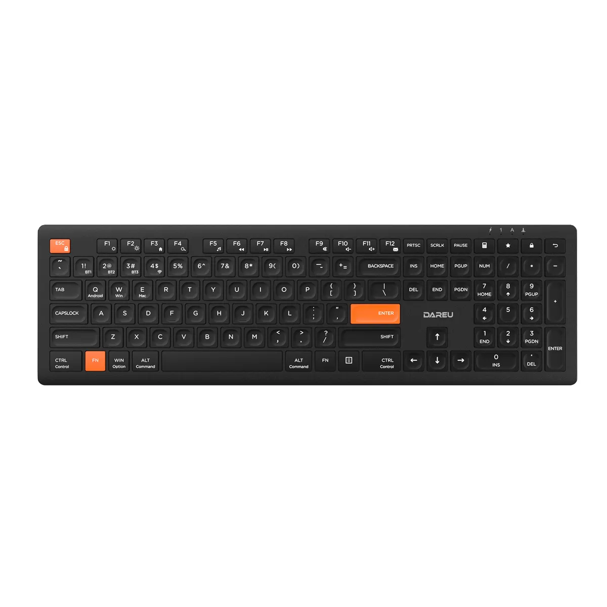 Bàn phím không dây DareU LK150D Black-Orange trang bị khả năng kết nối kép linh hoạt, cho phép chuyển đổi mượt mà giữa Bluetooth và sóng không dây 2.4GHz. Việc chuyển đổi giữa các chế độ kết nối được thực hiện tức thì, mang đến trải nghiệm làm việc liền mạch và không gián đoạn trong mọi tình huống.