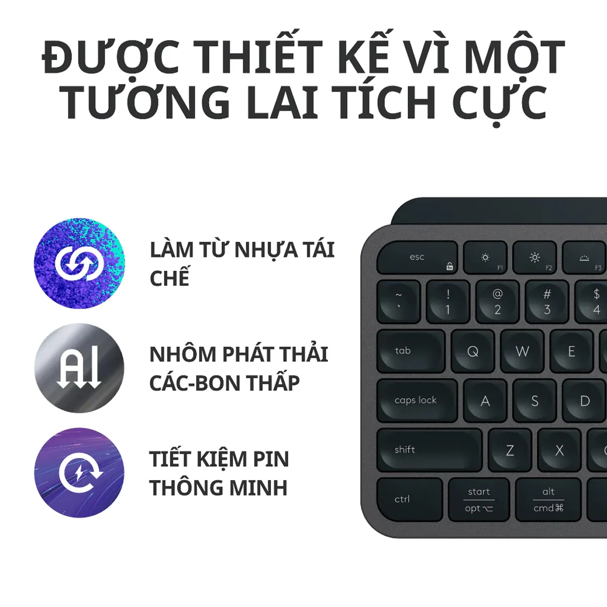 Lớp vỏ bên ngoài của Logitech MX Keys S được làm bằng hợp kim nhôm, góp phần tạo được độ bền vượt trội. Đặc biệt, bàn phím có chất liệu bền vững và có thể tái chế sau khi sử dụng, đem lại khả năng chống mài mòn và nâng cao tuổi thọ sử dụng bàn phím.