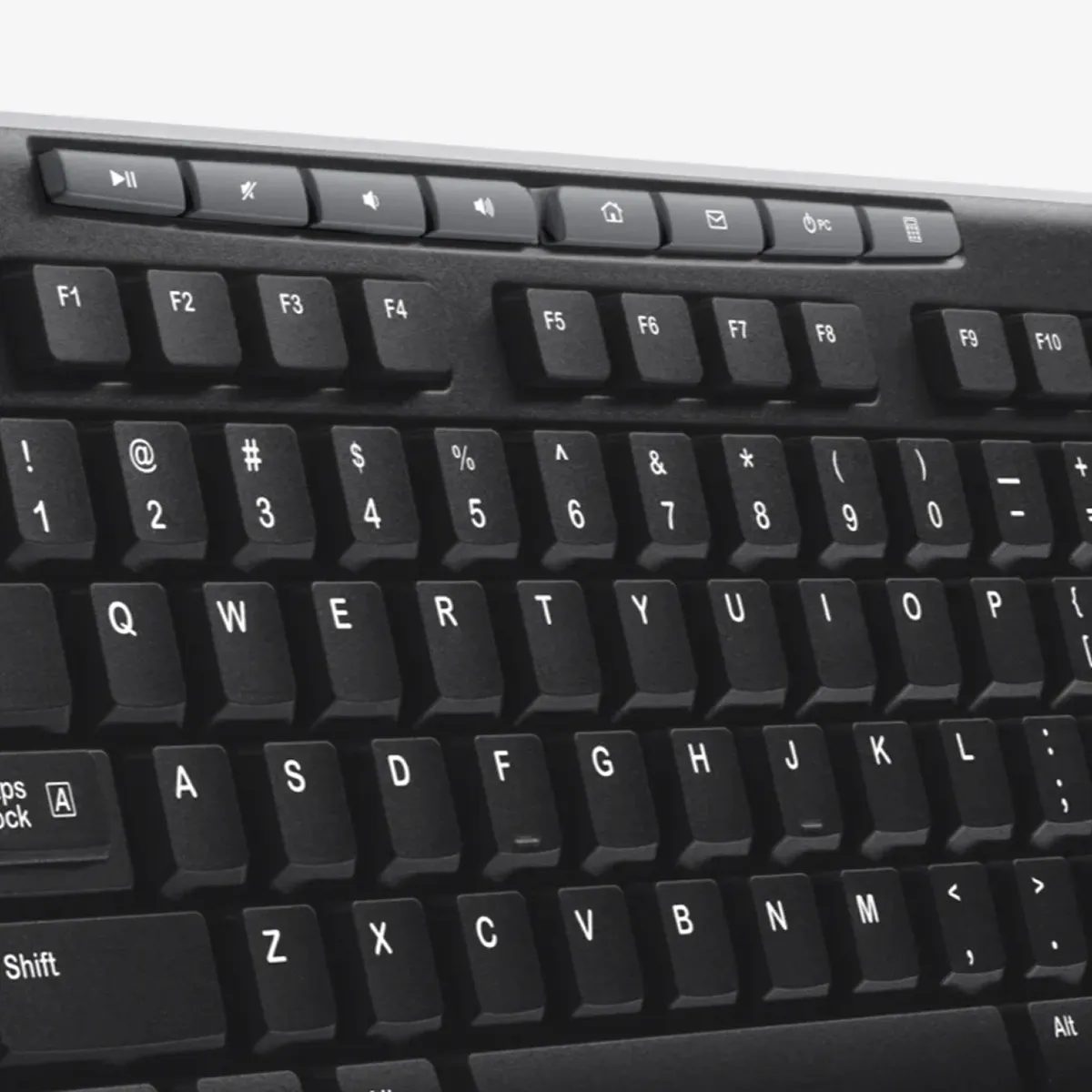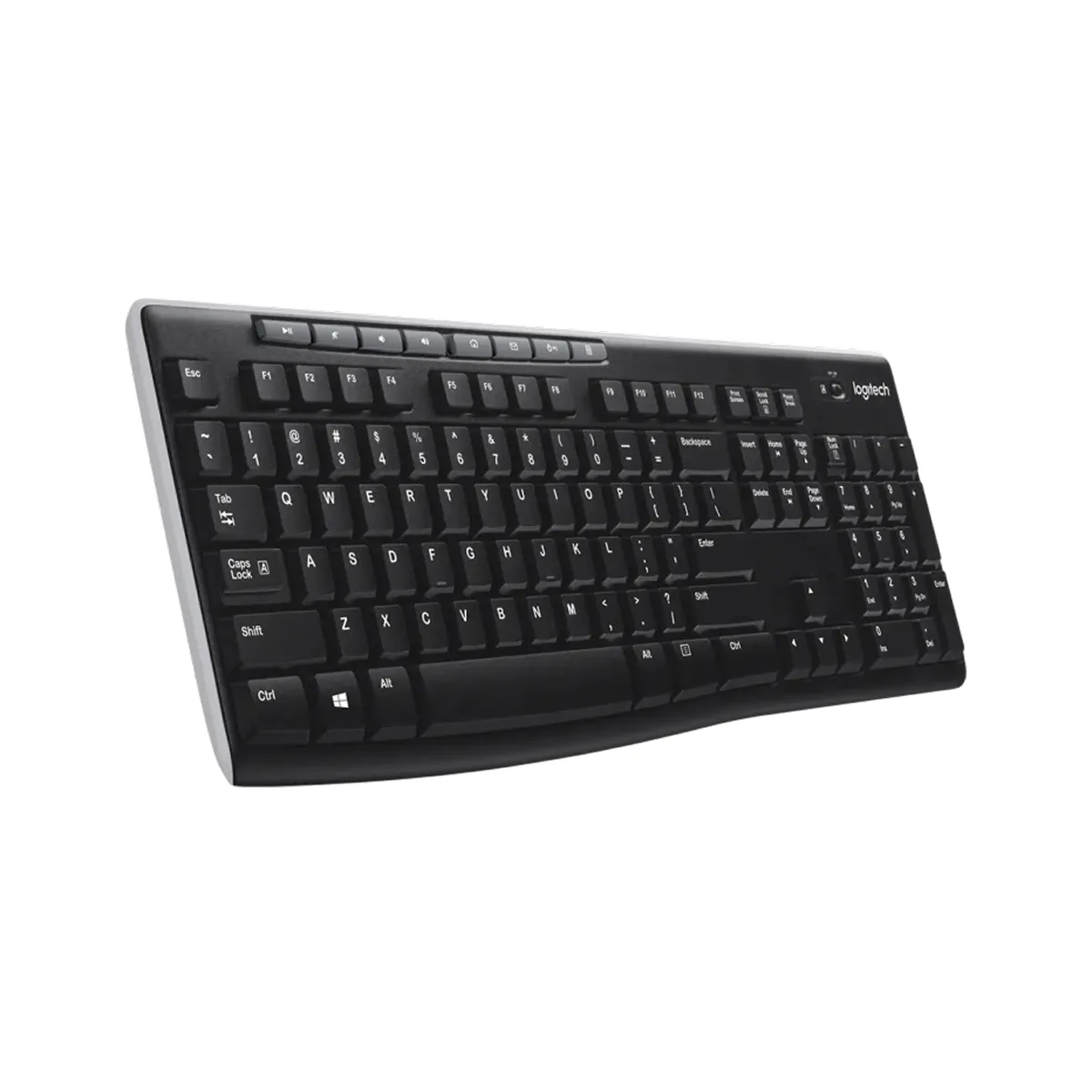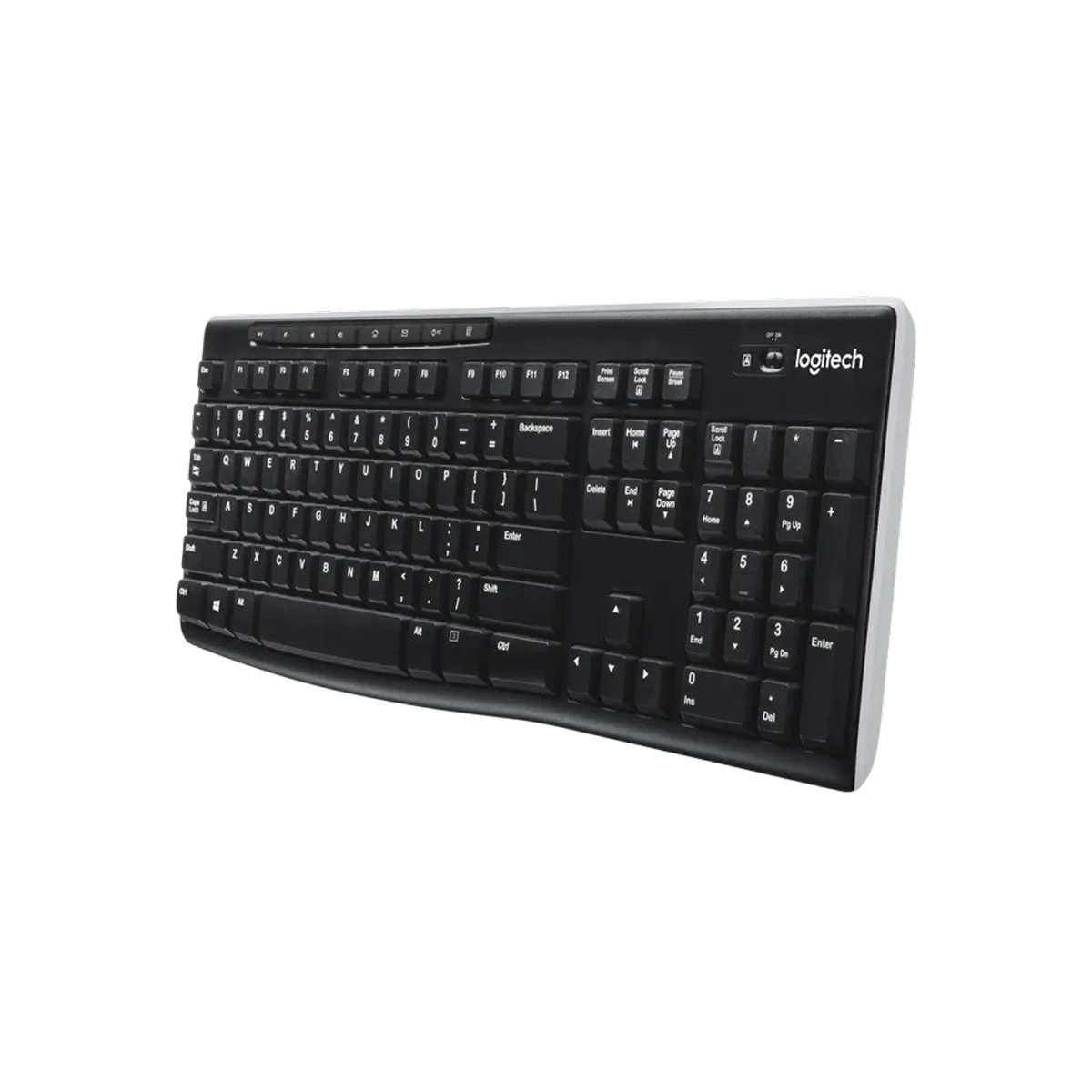 Là một bàn phím full size nên mặt trước Logitech K270 có đầy đủ các phím quen thuộc và bàn phím số. Điểm đặc biệt hơn so với những loại bàn phím thông thường khác đó là việc Logitech K270 được trang bị thêm một hàng 8 phím chức năng. Thiết kế này giúp các thao tác của người dùng đơn giản hơn rất nhiều, việc mở/tắt nhạc, mở calculator, email trở nên nhanh chóng hơn.
