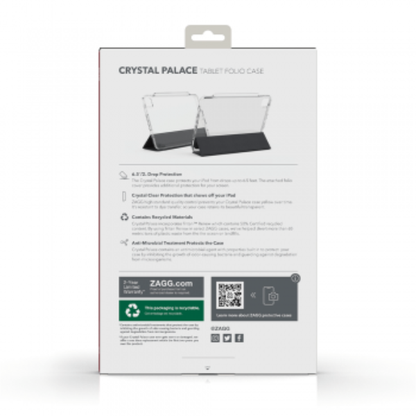 Bao da iPad Pro 11/Air 10.9 Zagg Crystal Palace được thiết kế trong suốt, mỏng nhẹ làm từ chất liệu nhựa cứng viền dẻo và chống rơi vỡ ở độ cao tới 2m. Bạn có thể tạo ra góc nhìn tiện lợi cho iPad khi giải trí và làm việc từ phần nắp gập tiện lợi.