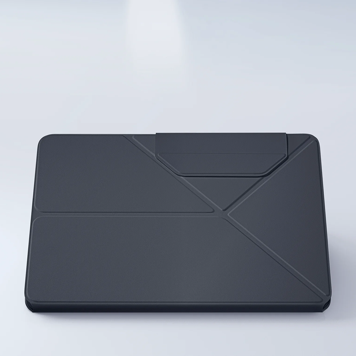 Phần bìa trước với cấu trúc gấp ba của bao da giúp che phủ màn hình, hạn chế bụi bẩn tích tụ trên mặt kính khi không sử dụng. Bao da tích hợp nam châm giữ bìa đóng kín, hạn chế bụi, vật nhỏ tiếp xúc với màn hình. Lớp bọc bao phủ mặt trước và mặt sau máy tính bảng.