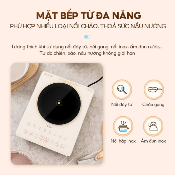 | Chế độ nấu | Nhiệt độ cao, Xào, Nấu canh, Chiên, Lẩu, Hấp, Nướng, Đun nước |