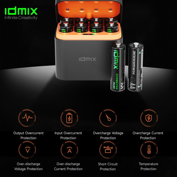 Bộ hộp sạc IDMIX 8 viên pin AA 3000mWh 2A08 - Nguồn pin tiện lợi, tiết kiệm lâu dài