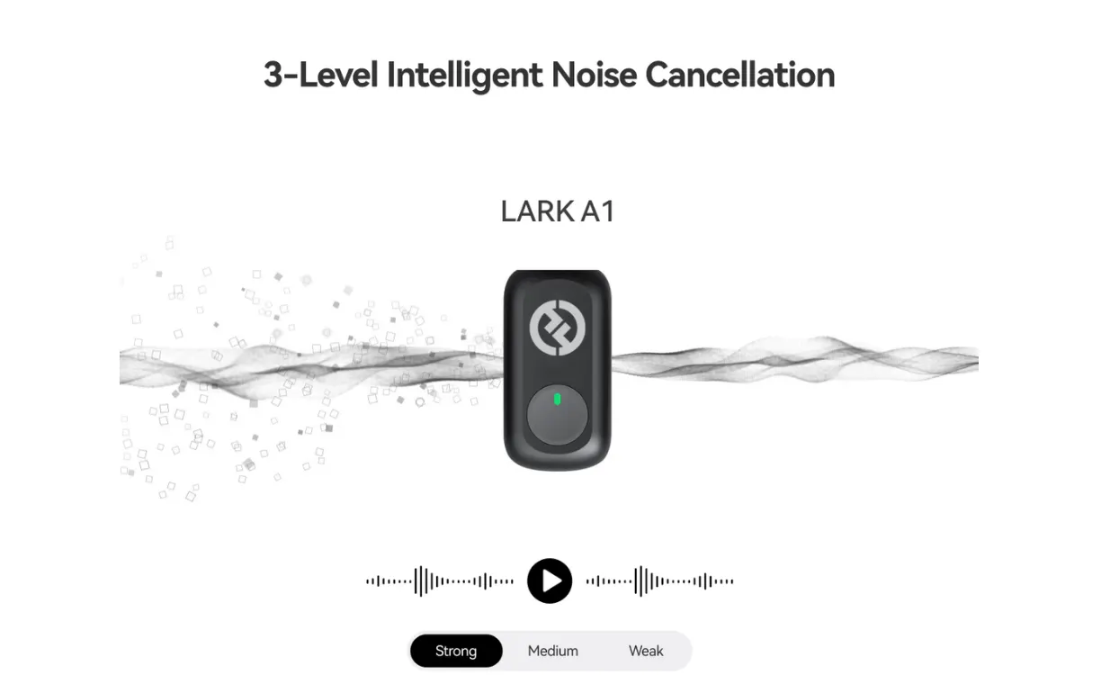 Bộ microphone thu âm Hollyland Lark A1 Mini Duo Lightning RX được trang bị công nghệ khử nhiễu 3 cấp độ, cho phép tùy chỉnh theo từng môi trường ghi hình. Nhờ đó, âm thanh giọng nói luôn giữ được sự rõ ràng, tự nhiên, dễ nghe và ổn định hơn khi quay trong nhiều điều kiện không gian khác nhau.