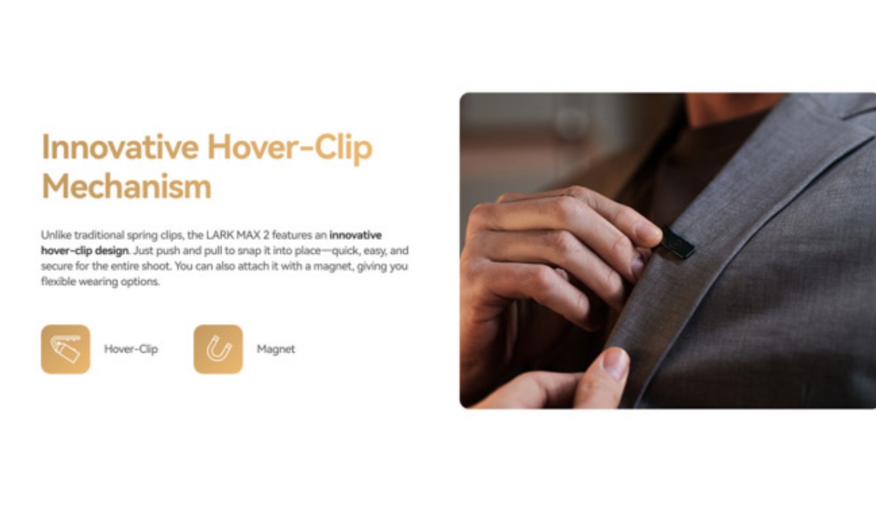 Thiết kế Hover-Clip kết hợp cùng nam châm từ tính giúp việc cố định micro trở nên dễ dàng trên mọi loại trang phục. Bề mặt thiết bị còn được phủ lớp Nano Excimer cao cấp giúp hạn chế trầy xước và bám bẩn hiệu quả.