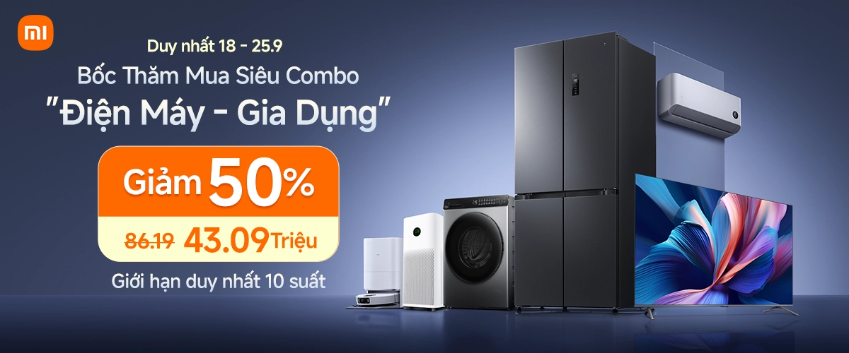 - Khách hàng đăng ký tham gia chương trình có cơ hội sở hữu Combo Big Home Appliance Xiaomi với mức giá ưu đãi giảm đến 50%.