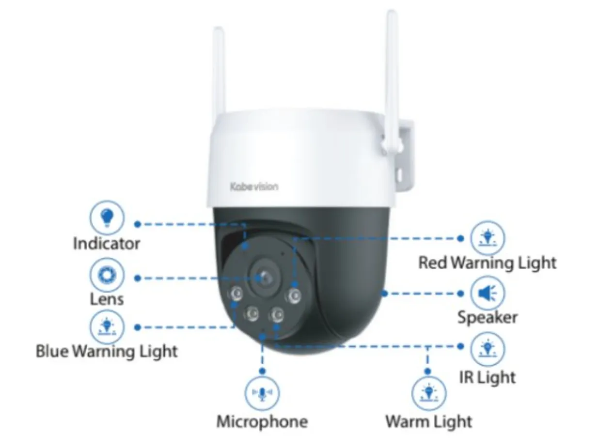 Không chỉ ghi hình, KBVision KX-S3L còn được tích hợp micro và loa, hỗ trợ đàm thoại hai chiều, cho phép người dùng trò chuyện với người ở khu vực giám sát. Chức năng còi hú và đèn chớp xanh đỏ báo động được kích hoạt khi phát hiện chuyển động khả nghi, giúp tăng cường khả năng cảnh báo và ngăn chặn kịp thời.