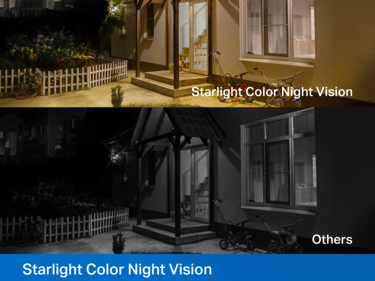 Tăng cường an ninh với ống kính khẩu độ F1.6, cảm biến Starlight và đèn chiếu tích hợp, hỗ trợ ghi hình rõ nét trong điều kiện ánh sáng yếu.