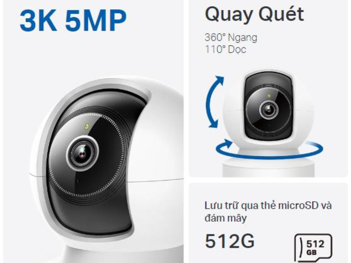 Quay, quét tới 360 độ đảm bảo hạn chế tình trạng góc chết, giúp người dùng theo dõi sát sao các khu vực.
