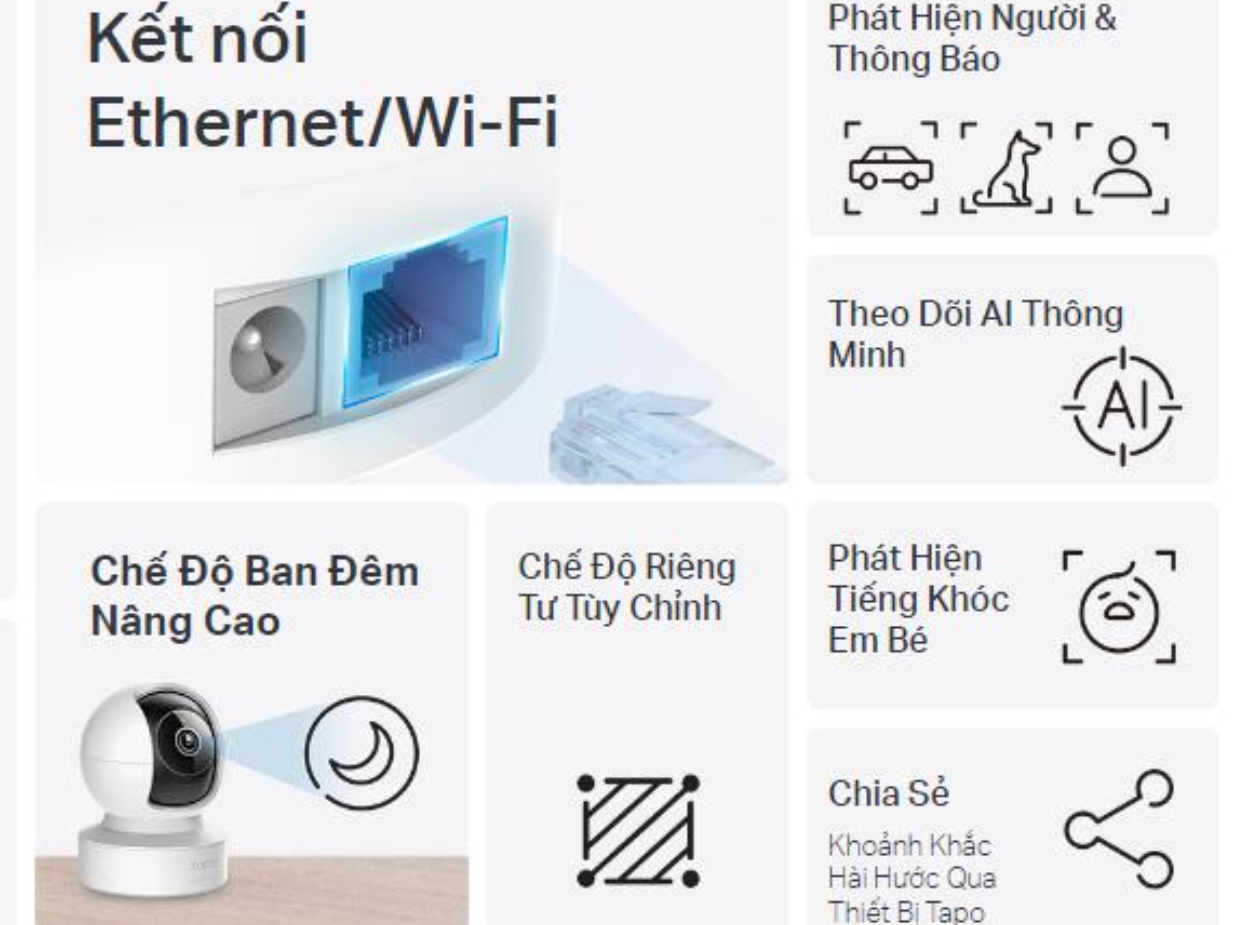 Khi phát hiện chuyển động lạ, hệ thống camera sẽ gửi thông tin trực tiếp về điện thiết bị cá nhân thông qua app Tapo. Ngoài ra, thiết bị còn hỗ trợ tính năng phát hiện giả mạo và vượt ranh giới ảo, hỗ trợ bảo vệ khu vực quan trọng khỏi các hành vi xâm nhập.