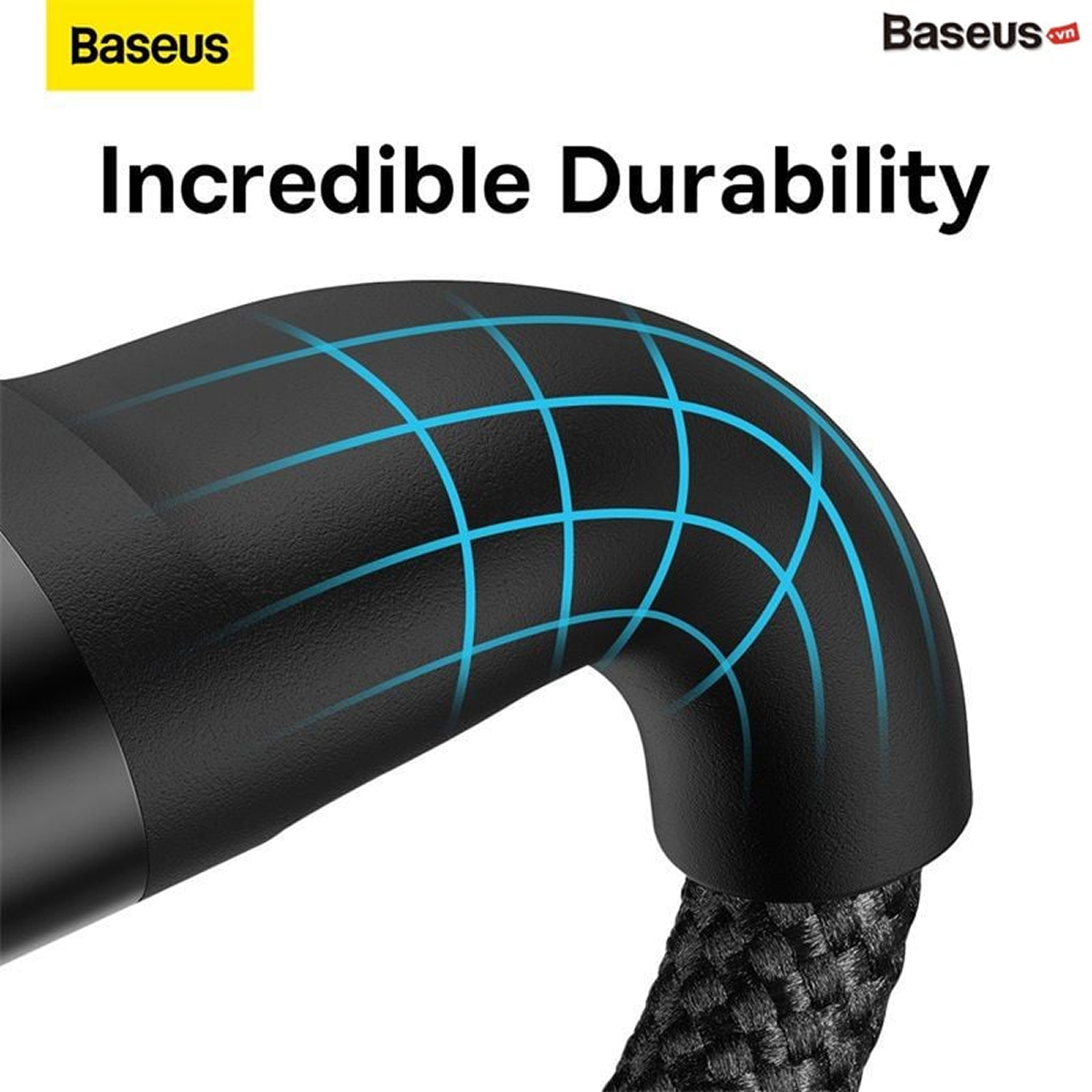 Cáp Baseus 3 in 1 USB-C to M+L+C 100W 1.5m sử dụng hợp kim nhôm kết hợp dây dệt Nylon, đi kèm ba tùy chọn màu đen, xanh và tím thời thượng. Bên trong cáp gồm 8 lõi đồng mạ thiếc giúp tăng khả năng dẫn điện. Sản phẩm có chiều dài 1.5m cùng trọng lượng nhỏ gọn giúp cáp linh hoạt trong nhiều không gian.