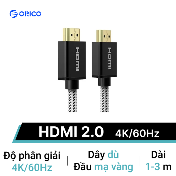 Cáp HDMI 2.0 Orico dây dù (chuẩn 4K/60Hz) dài 1 mét - Giải pháp kết nối chất lượng cao