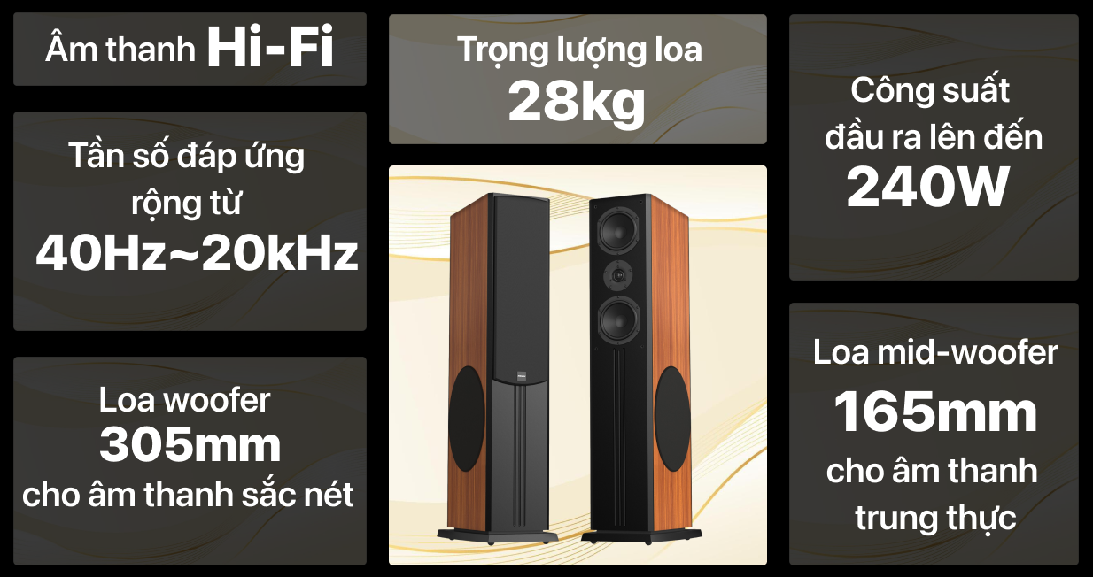 | Cấu tạo | Loa dome tweeter: 1 x Ø25.4mm |