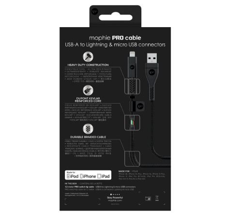 Giảm 500K khi thanh toán bằng thẻ tín dụng HDBankCáp Mophie 2 trong 1 (Micro-Lightning) siêu bền 1.2M chính hãng, chất lượng hiện tạm thời hết hàng. Quý Khách có thể tham khảo thêm các sản phẩm cáp nhiều cổng khác tại Cellphones.
