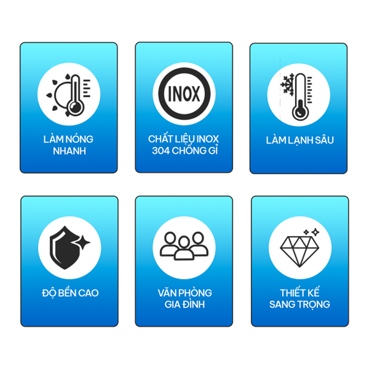 | Tiện ích | Đun nóng cấp tốc, Khóa an toàn, Đèn báo nóng lạnh, Khay hứng nước |