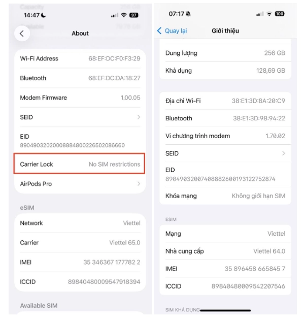 → Chỉ có thể sử dụng mạng Viettel cho cả 2 SIM đến khi máy được mở khóa.