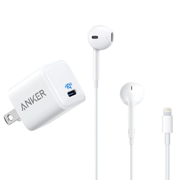 Combo 2 món gồm Sạc Anker Powerport III Nano 20W A2633 và Tai nghe Apple EarPods Lightning MMTN2